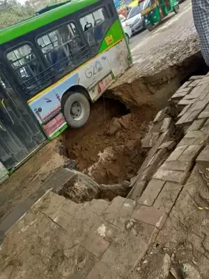 दिल्ली में भारी बारिश, सड़क धंसने से ट्रैफिक प्रभावित
