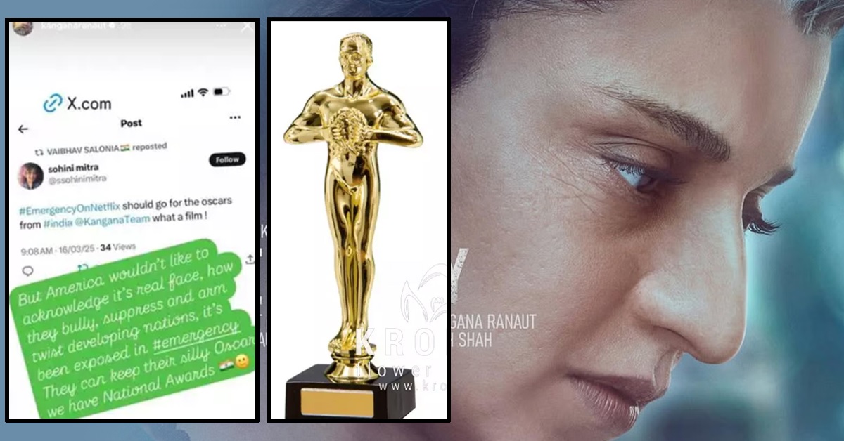 कंगना रनौत की इमरजेंसी पिछले हफ्ते नेटफ्लिक्स पर रिलीज हुई और वो इंस्टाग्राम पर इसके लिए नई Reactions और Reviews share कर रही हैं। फिल्म भले ही सिनेमाघरों में अपना कमाल नहीं दिखा पाई, लेकिन इसे ओटीटी पर काफी प्यार मिल रहा है। सोशल मीडिया पर कुछ यूजर्स ने फिल्म की तारीफ भी की है और एक फैन ने तो इसके ऑस्कर जीतने तक की बात कह दी। हालांकि, इस पर कंगना का जवाब चौंकाने वाला रहा आज हम आपको एक बहुत ही दिलचस्प और viral मुद्दे के बारे में बताने जा रहे हैं। हाल ही में कंगना रनौत ने एक जबरदस्त बयान दिया है, और ये बयान सीधे तौर पर ऑस्कर अवॉर्ड से जुड़ा हुआ है। आइए जानते हैं कि आखिर कंगना ने क्या कहा और क्यों ये Statement पूरे बॉलीवुड और audience के बीच चर्चा का topic बन गया है।"जैसा कि हम सब जानते हैं, कंगना रनौत हमेशा अपने बेबाक और clear Thoughts के लिए जानी जाती हैं। इस बार भी उन्होंने कुछ ऐसा कहा है, जिसे लेकर काफी बहस हो रही है। लेकिन, क्या कंगना का ये बयान सही है? क्या वो सही मायने में ऑस्कर अवॉर्ड को लेकर अपनी नाराजगी जता रही हैं, या फिर वो कुछ और कहना चाहती हैं? तो चलिए, जानते हैं पूरी बात।"