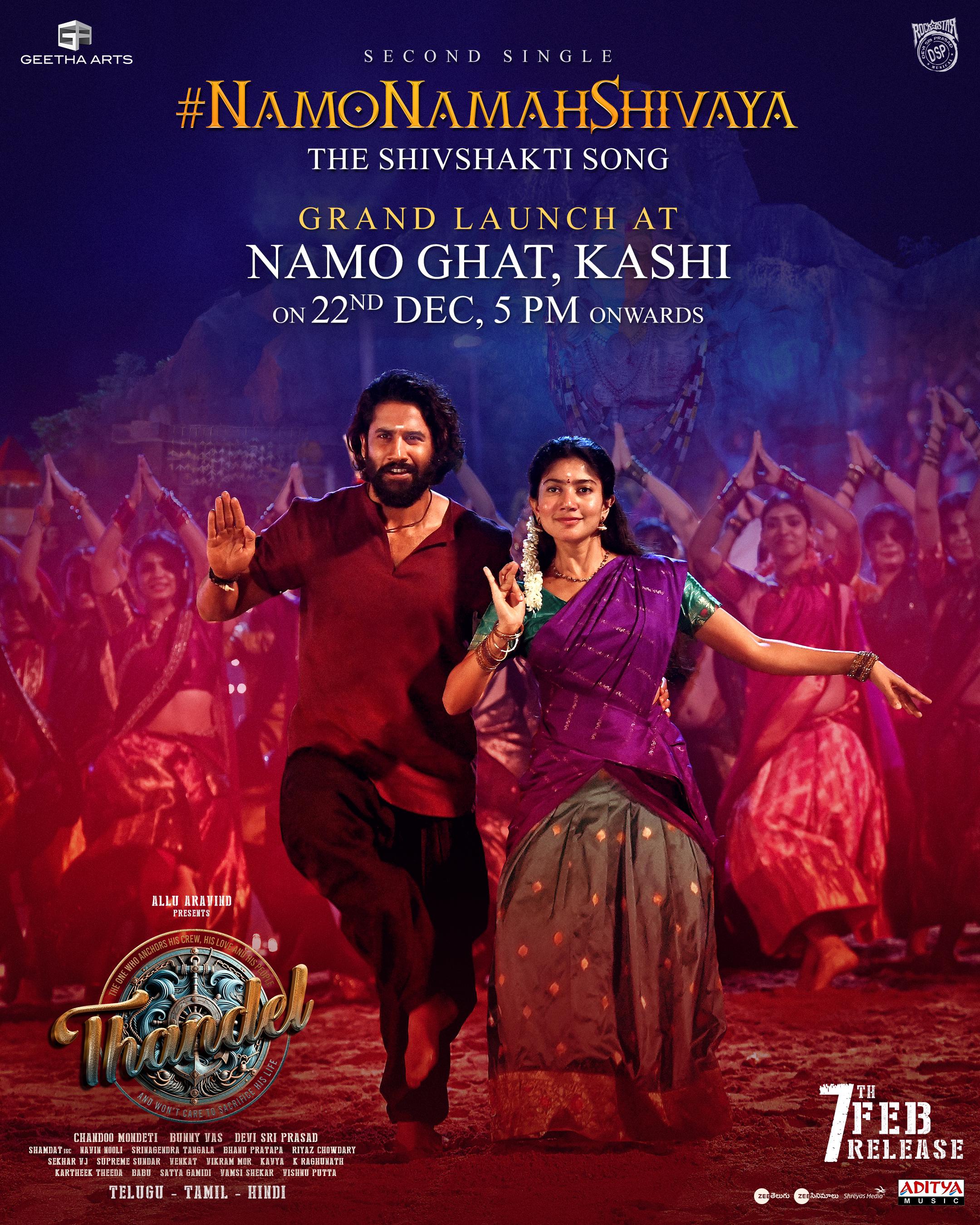 नमो नमः शिवाय का पोस्टर इस रहस्य को और बढ़ाता है, जिसमें नागा चैतन्य और साई पल्लवी शक्तिशाली शिव और शक्ति मुद्राओं में कैद हैं, जो एक-दूसरे को गहन ध्यान से देख रहे हैं। भारी भीड़ से घिरे, उनके पारंपरिक परिधान और जथारा का जीवंत माहौल गाने के आध्यात्मिक विषय को जीवंत कर देता है। इस गाने को बड़े बजट में बड़े पैमाने पर शूट किया गया था, जिससे यह नागा चैतन्य का अब तक का सबसे महंगा ट्रैक बन गया।