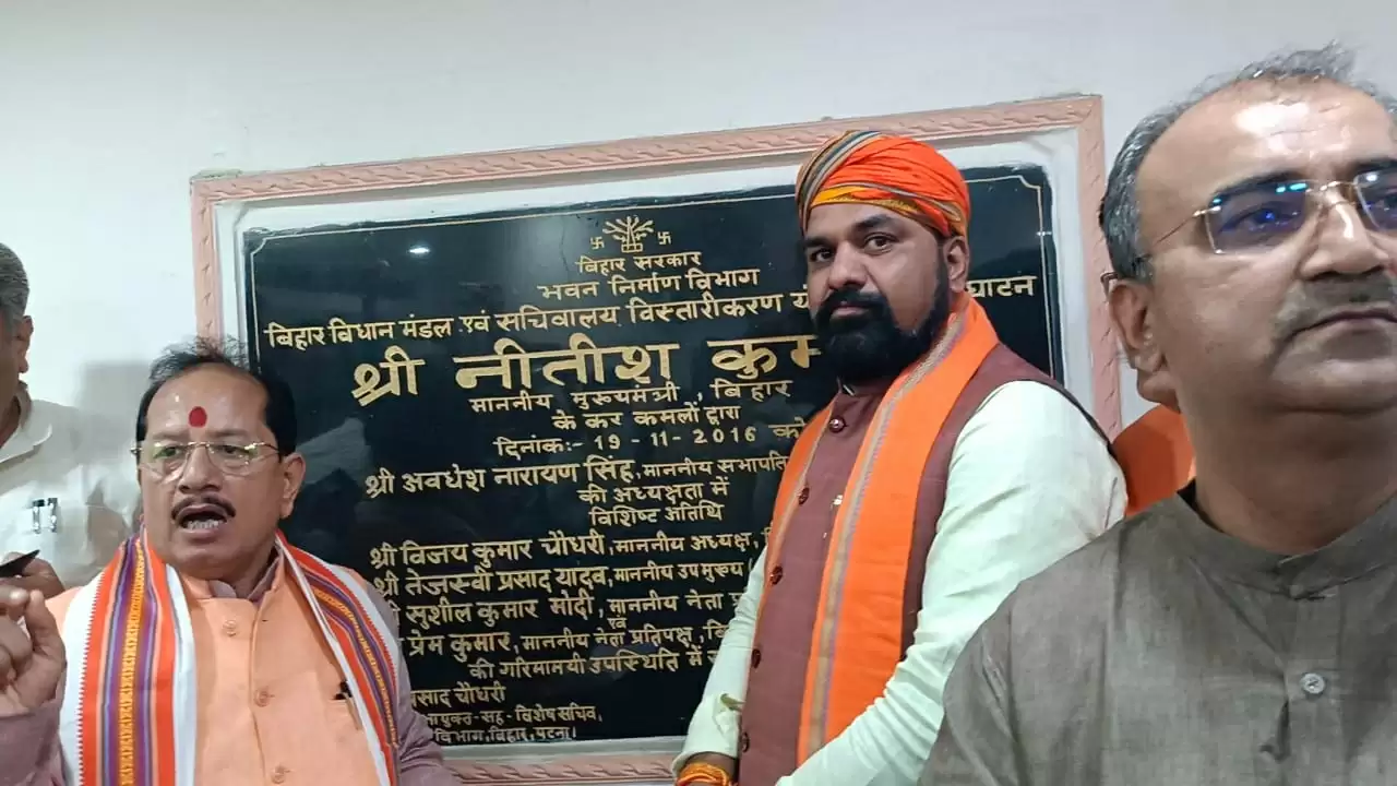 भाजपा के एमएलए, एमएलसी ने विधानमंडल में नीतीश नाम का दिखाया शिलापट्ट, सम्राट ने कहा, दोहरा चरित्र अपना रहा विपक्ष