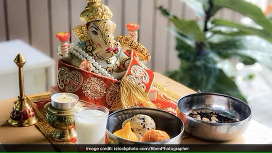 घर के पूजा स्थल को शुद्ध करें और भगवान गणेश की प्रतिमा या चित्र स्थापित करें।