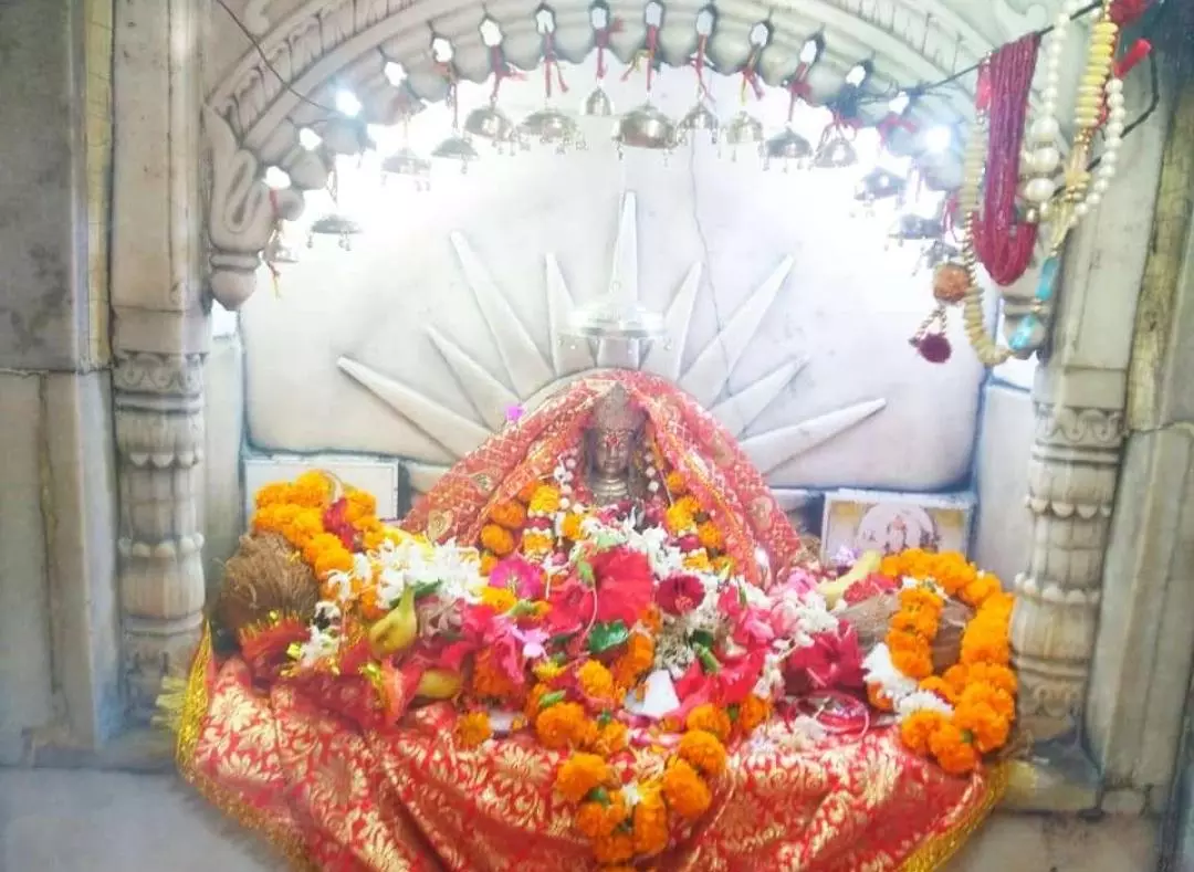 उस क्षण सारा प्रतिबिम्ब मां के मुकुट पर अंकित हो जाता है। यह प्रतिमा मां के उसी बिम्ब का प्रतिबिम्ब है। माता का यह स्थान पौराणिक और पुरातात्विक दृष्टिकोण से अपना विशिष्ट स्थान बनाए हुए है। मंदिर दक्षिण दिशा मुखी और शेर पर सवार मां, वह भी आशीर्वाद की मुद्रा में होने के कारण माता की यह प्रतिमा तांत्रिक विधियों में भी काफी फलदायीमानी जाती है।