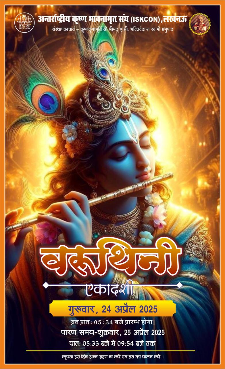 लखनऊ डेस्क(आर एल पाण्डेय)lइस्कॉन मन्दिर अध्यक्ष श्रीमान अपरिमेय श्याम प्रभुजी ने बताया कि दिनांक 24 अप्रैल, 2025 दिन गुरूवार को वरुथिनी एकादशी है l