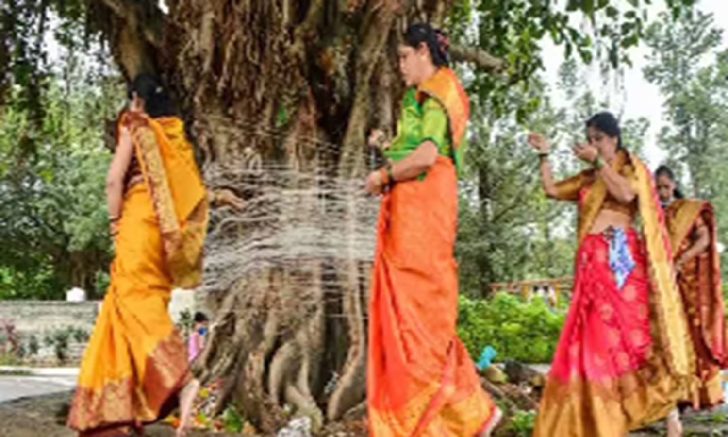 वृक्ष के तने पर सात फेरे लेते हुए कच्चे सूत को बांधें और सौभाग्य प्राप्त होने के साथ पति और परिवार की लंबी आयु का आशीर्वाद मांगें।