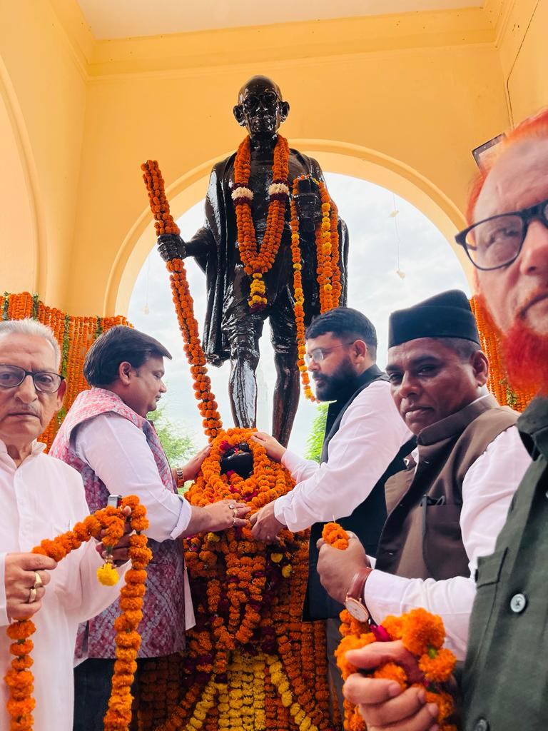 लखनऊ। *पीस एजूकेशनल चैरेटीबिल ट्रस्ट (शराब बंदी संघर्ष समिति) और राष्ट्रीय शराबबंदी संयुक्त मोर्चा नें आज गांधी जयंती दिनांक दो अक्टूबर(2 अक्टूबर) को हज़रतगंज स्थित गांधी प्रतिमा पर समय सुबह 11:00 पर संस्था के पदाधिकारीयों व समस्त साथियों सहित दो मिनट का मौन रखकर राष्ट्रपिता महात्मा गांधी को श्रद्धांजलि अर्पित की और सम्पूर्ण भारत में शराब बंदी की मांग को लेकर एक ज्ञापन माननीय राष्ट्रपति महोदया और माननीय प्रधानमंत्री जी को भेजा गया ! यह कार्यक्रम समस्त उत्तर प्रदेश के हर जिले और भारत के तमाम प्रदेशों से में संस्था के पदाधिकारीयों व कार्यकर्ताओं के द्वारा करना सुनिश्चित किया गया था उसी क्रम में लखनऊ के हज़रतगंज स्थित गांधी प्रतिमा पर यह आयोजन किया गया*