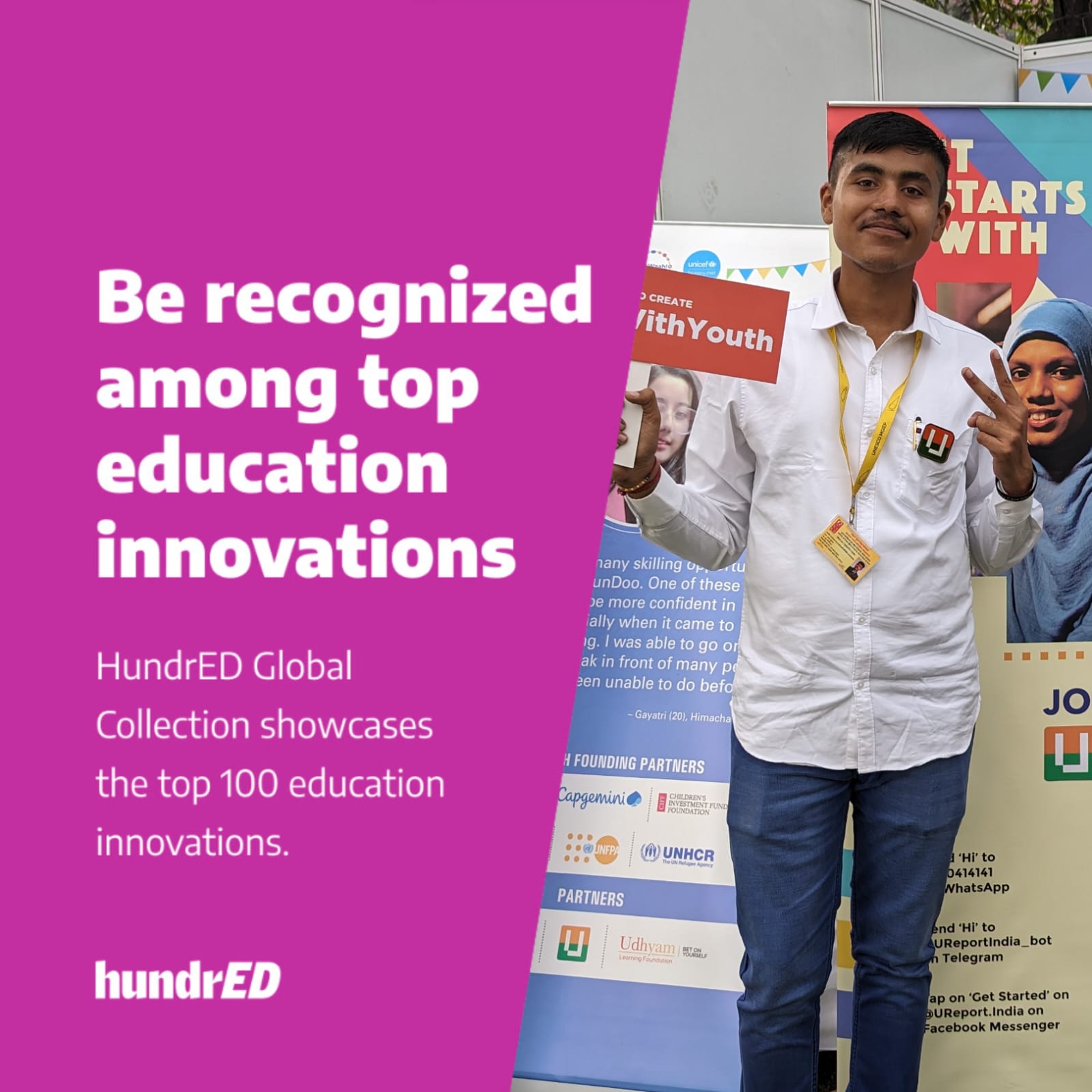 इस बार जिले में शैक्षिक नवाचार को बढ़ावा दे रहे शिक्षकों एवं संगठनों के लिए अवसर है कि वह शिक्षा में नवाचार के अपने प्रयासों को ग्लोबल कलेक्शन हेतु भेजे। हंड्रेड फिनलैंड की आधिकारिक वेबसाइट के माध्यम से लिंक https://hundred.org/en/innovations/new?collection_id=hundred-global-collection-2025 पर आवेदन कर सकते है जिसकी अंतिम तिथि 1 मई है।