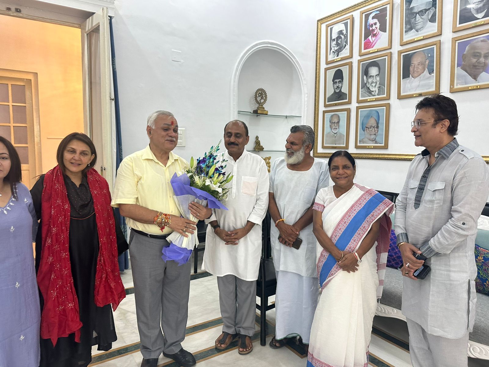 वही कार्य इस दायित्व शाली पद का होता है। मुझे यह कहने में गर्व की अनुभूति होती है कि यह जिम्मेदारी कई वर्षों से प्रशासनिक अनुभव के धनी मिश्र जी निर्वाह कर रहे हैं। अवसर था राजभवन के हाल का देश में ग्यारह हजार बहनों को आजीविका से जोड़ने का अद्भुत काम करने वाली,बाबा के स्त्री शक्ति को निरंतर खड़ी करने वाली क्राफ्ट रूट संस्था और ग्रामश्री की प्रमुख अनार बेन पटेल ने विनोबा विचार प्रवाह परिवार की तरफ से हरिजन सेवक संघ की राष्ट्रीय सचिव उर्मिला बहन , गुजरात के दक्षेश भाई और श्रीमती शीतल बहन अहमदाबाद तथा बाबा विनोबा के लघु सिपाही रमेश भइया ने स्वागत किया।