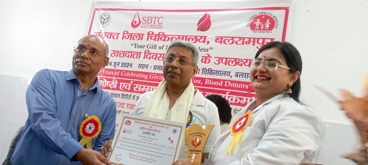 बलरामपुर: सँयुक्त जिला चिकित्सालय बलरामपुर में रक्तदान शिविर आयोजित करने वाली संस्थाओं को सम्मानित करने के लिए सम्मान समारोह कार्यक्रम का आयोजन किया गया। इसमें जनपद की विभिन्न 30 संस्थाओं को इसके लिए चयनित किया गया था, जिसमें प्रमुख रूप से यूथ हॉस्टल्स, लायंस क्लब, अग्रसेन सेवा समिति, एस एस बी, एन सी सी, अमर उजाला, दैनिक जागरण, एम एल के कॉलेज सहित अनेक संस्थाएं थीं।