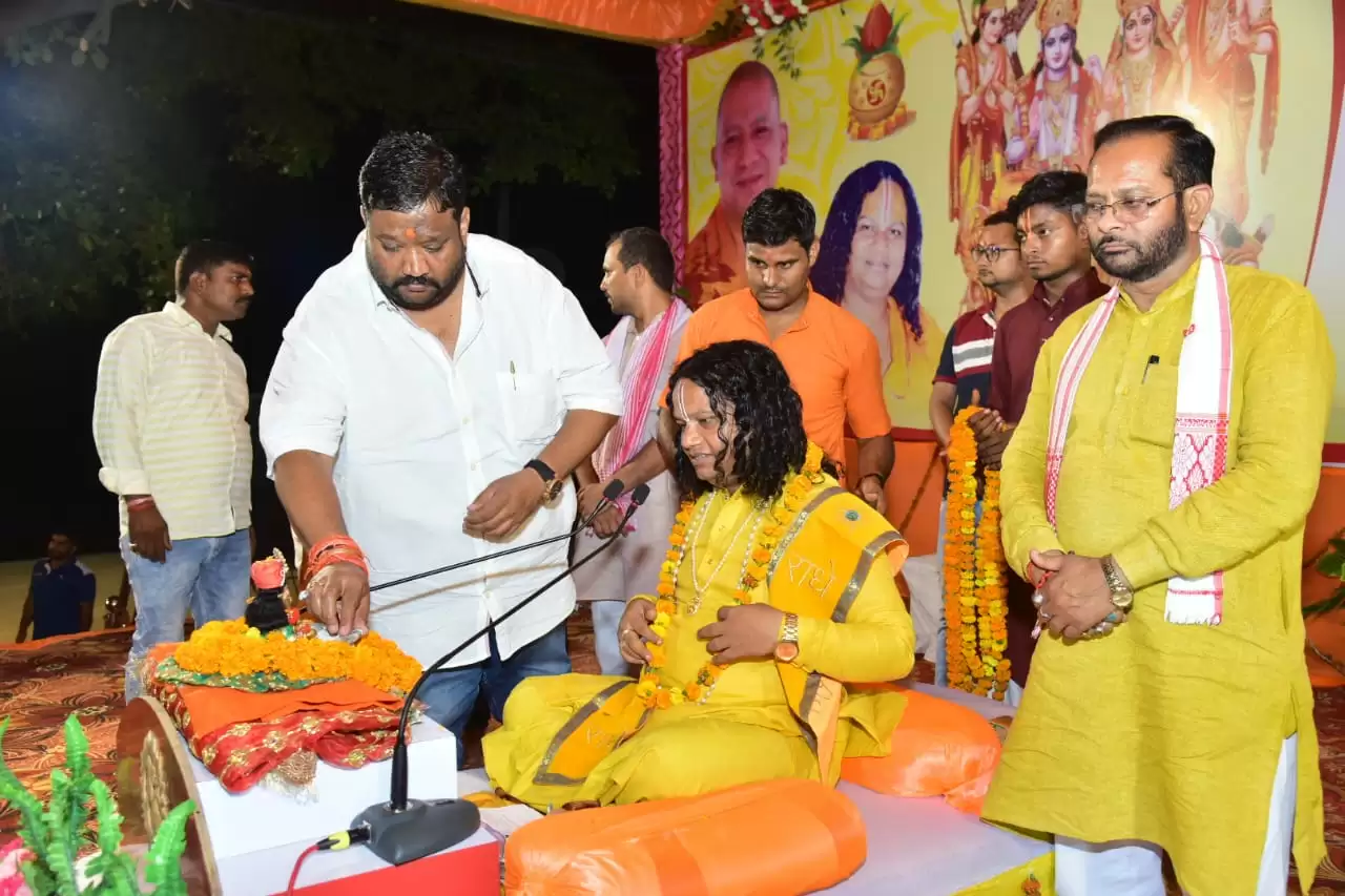 श्री देवी पाटन महंन्थ योगी मिथिलेश नाथ महराज ने व्यासपीठ का पूजन कर तृतीय दिवस का कथा शुभारम्भ कराया।