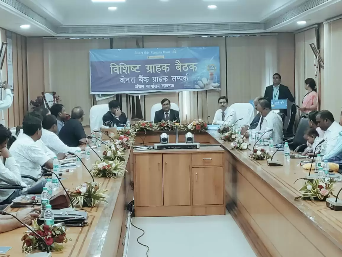 लखनऊ। केनरा बैंक लखनऊ क्षेत्रीय कार्यालय प्रथम और द्वितीय ने अंचल कार्यालय के सभागार में विशिष्ट ग्राहक बैठक का आयोजन किया , जिसमे अंचल महाप्रबंधक आलोक कुमार अग्रवाल ने बैंक के ग्राहकों को बैंक द्वारा मार्च 2023 में 20 लाख करोड़ बिजनेस होने पर सभी को हार्दिक बधाई दी और बेहतर सेवा करने का संकल्प लिया। आज की बैठक में लखनऊ क्षेत्रिय कार्यालय प्रथम के सहायक महा प्रबंधक अमित कुमार अस्थाना ने सभी विशिष्ट ग्राहको का स्वागत किया , बैंक ने अपने ग्राहकों को खुदरा व्यापार, एम एस एम ई योजना, कृषि ऋण एवं डिजिटल बैंकिंग के नए उत्पादों के बारे में विस्तृत जानकारी दी ।