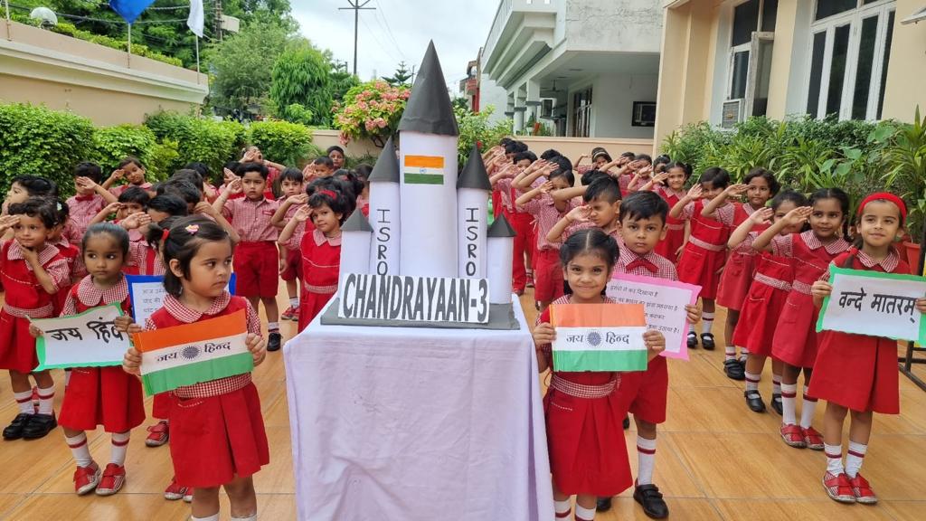 संस्था के निदेशक श्री मनीष सिंह जी ने भी इस अविस्मरणीय पल के लिए इसरो की अभूतपूर्व सफलता एवं भारत देश की अप्रतिम कामयाबी के लिए सभी को बधाई व शुभकामनायें दी l उन्होंने सभी बच्चों को सम्बोधित करते हुए कहा कि यह सफलता हमारे एक्सपर्ट वैज्ञानिको की मेहनत का नतीजा है कि आज भारत चाँद के दक्षिणी ध्रुव के पास कामयाब लैंडिंग करने वाला दुनिया का पहला देश बन गया है l हम सभी को भारत की इस कामयाबी पर बहुत गर्व है l