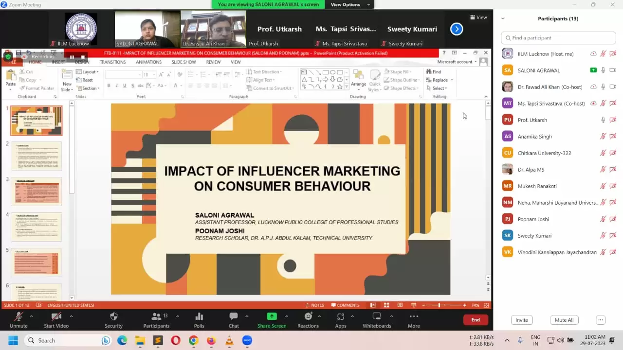 In the end, Conference Convener Dr. Vibhuti Gupta, Associate Professor IILM Lucknow thanked all the dignitaries, experts, guests, participants, organizing committee members & all individuals who directly or indirectly made the International Conference a grand success.