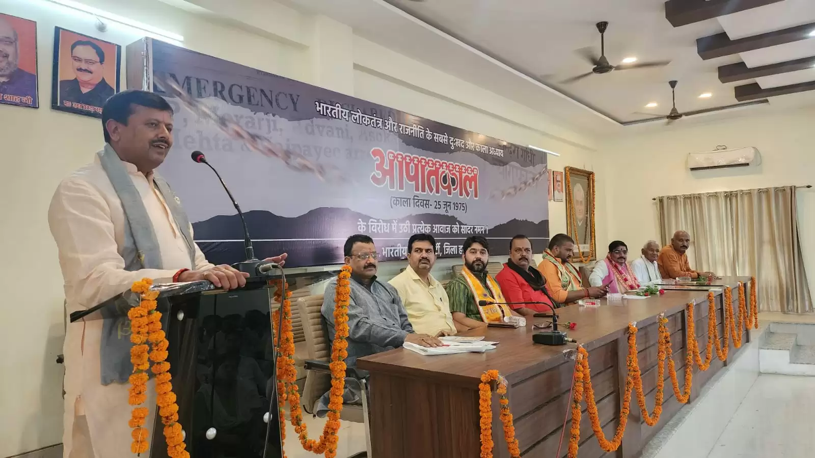गोष्ठी को संबोधित करते हुए शिवभूषण ने कहा कांग्रेस पार्टी जो आज देश में लोकतंत्र के कमजोर होने का रोना रोती है इसी ढोंगी कांग्रेस पार्टी ने 25 जून 1975 को भारतीय लोकतंत्र का गला घोट कर आपातकाल लागू किया। साथ ही कांग्रेस ने अपनी मुगलिया सोच के कारण देश के नागरिकों पर अत्याचार की पराकाष्ठा भी पार की