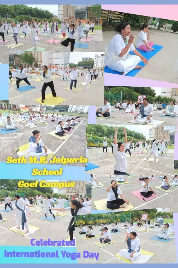 लखनऊ। सेठ एम. आर. जयपुरिया, गोयल कैम्पस में १९ जून से २१ जून २०२३ तक "तीन दिवसीय योग दिवसीय प्रशिक्षण कार्यशाला" का आयोजन सुबह ६:३० से ७:३० बजे तक योग्य प्रशिक्षक की देख रेख में किया गया। जिसमें प्रधानाचार्या डॉ. रीना पाठक , उपप्रधानाचार्य सुशांत श्रीवास्तव एवं शिल्पी जैन ने सभी अध्यापकों के साथ कार्यशाला में सक्रियता पूर्वक भाग लिया। इस अवसर पर छात्रों,अभिभावकों के साथ साथ आसपास के अन्य लोगों ने भी लाभ उठाया। विद्यालय ने छात्रों को प्रोत्साहित करने के लिए विभिन्न योगमुद्राओ को दिखाने के लिए कोलाज प्रतियोगिता का आयोजन किया और प्राइमरी कक्षा के विद्यार्थियों ने अपने अपने वीडियो भेज कर इस प्रतियोगिता में भाग लिया। विद्यालय के चेयरमैन महेश अग्रवाल ने सभी से अपने दैनिक जीवन में नियमित रूप से योग को अपनाने का संदेश देते हुए कार्यशाला का समापन किया।