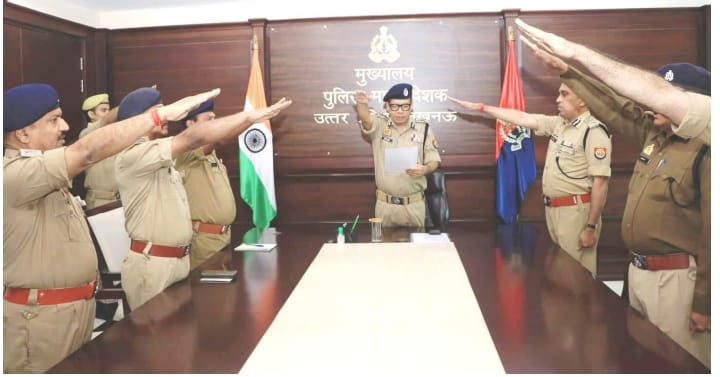 लखनऊ। विजय कुमार पुलिस महानिदेशक, उ0प्र0 द्वारा आज दिनांक 31.10. 2023 को पुलिस मुख्यालय गोमतीनगर विस्तार, लखनऊ में सरदार बल्लभ भाई पटेल जी के जन्म दिवस, जो "राष्ट्रीय एकता दिवस" के रूप में मनाया जाता है, इस अवसर पर अपने कक्ष में उपस्थित अधिकारियों के साथ शपथ दिलाई गयी ।
