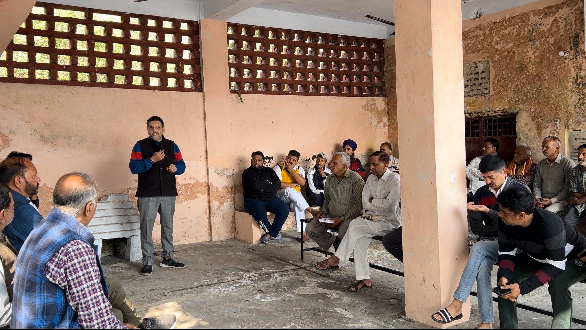 *फोटो ऊना* : शिवपुरी विकास समिति पंचघाटड़ा घाट विभौर समीति में बोलते हुए पंकज सहोड़