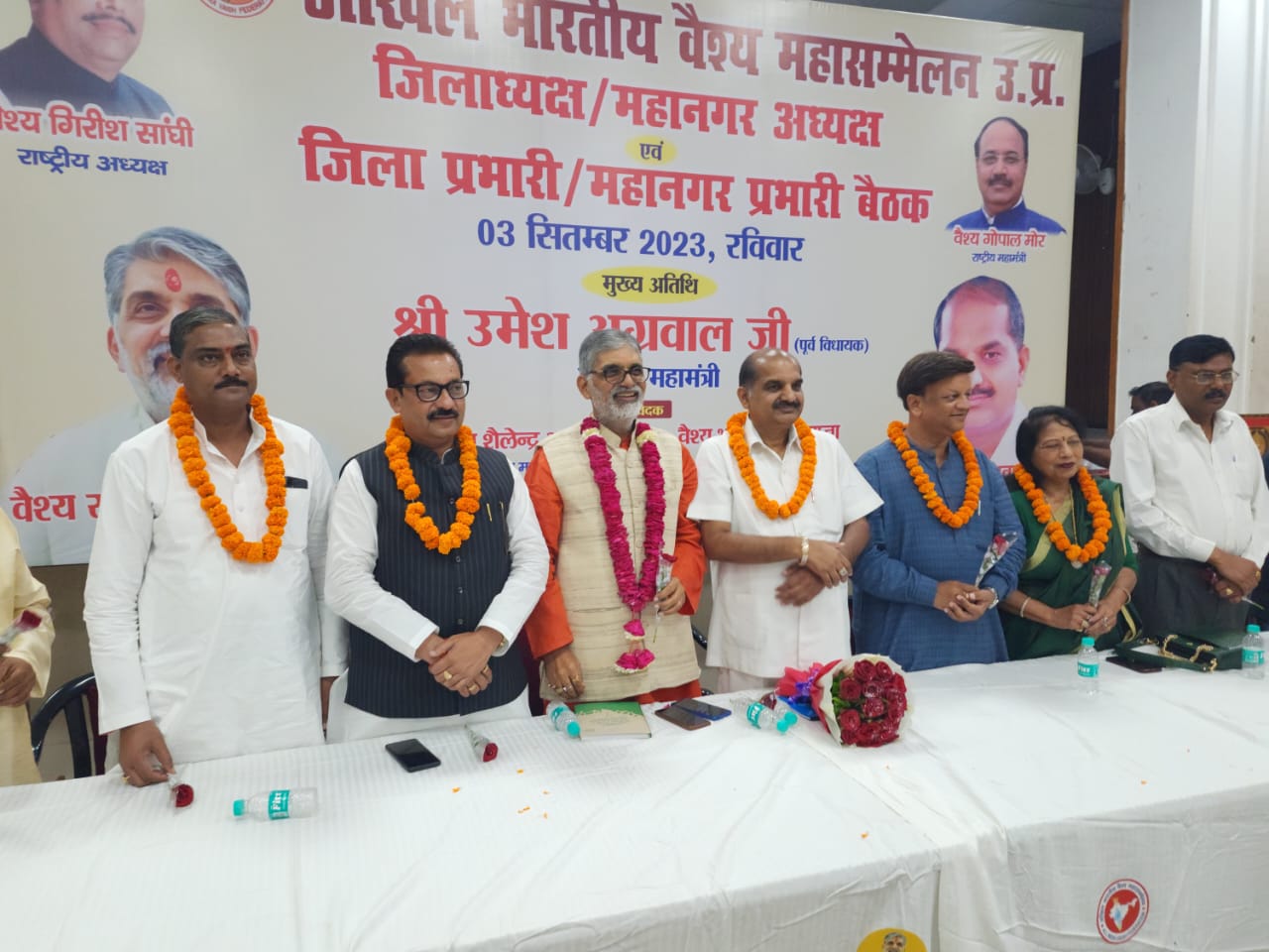 लखनऊ। अखिल भारतीय वैश्य उच्चस्तरीय महासम्मेलन प्रदेश अध्यक्ष सुधीर एस. हलवासिया की अध्यक्षता में महाराजा अग्रसेन शिक्षण संस्थान, मोती नगर, ऐशबाग में संपन्न हुआ। प्रदेश भर से वैश्य समाज के लोगो ने महासम्मेलन में एकत्रतित होकर अपनी एकता शक्ति का एहसास कराया।