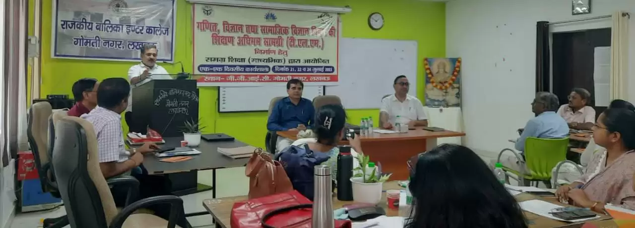 लखनऊ. राज्य परियोजना कार्यालय के निर्देशन में विज्ञान, गणित एवम सामाजिक विज्ञान विषय के लिए टीचर लर्निंग मैटेरियल निर्माण हेतु एक-एक दिवसीय कार्यशाला का आयोजन राजकीय बालिका इंटर कॉलेज, गोमती नगर में आरंभ हुआ। दिनांक 21, 22 व 24 जुलाई को होने वाली इस कार्यशाला में टीचिंग एड के माध्यम से शिक्षण को प्रभावी बनाने पर विशेष ध्यान दिया गया।