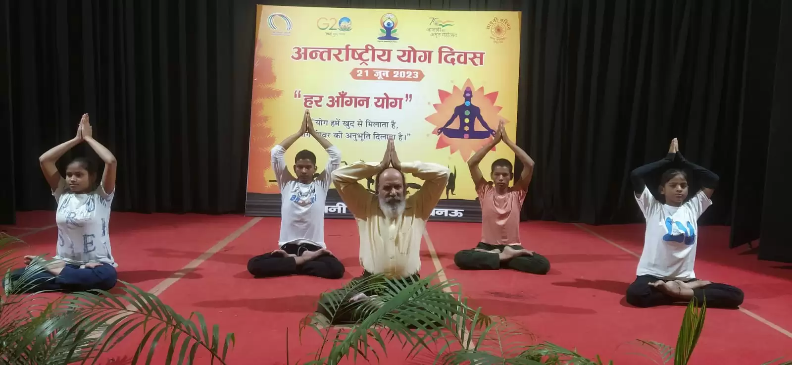 माध्यमिक विद्यालय आर ए बाजार के प्रेक्षागृह में छात्र-छात्राओं द्वारा योगाभ्यास किया गया