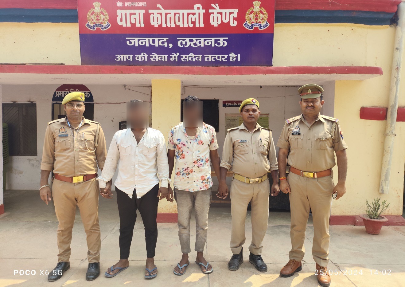 कि जरिये खास मुखबिर सूचना मिलने पर मरीमाता मंदिर निलमथा से जंगल की तरफ को जाने वाली सडक पर लगभग 50 मी0 अन्दर एकबारगी दबिश देकर मुकदमा उपरोक्त से संबंधित 02 नफर अभियुक्त 01. रितिक पुत्र दिनेश नि० राधाकृष्ण मंदिर के पास भगवंतनगर निलमथा थाना कैण्ट लखनऊ 02. शिवराज पुत्र कल्लू नि० हरिराम की दुकान के आगे खेत भगवंतनगर निलमथा थाना कैण्ट लखनऊ को गिरफ्तार किया। गिरफ्तारी के दौरान मा० मानवाधिकार आयोग एवं मा० उच्चतम न्यायालय के आदेशों निर्देशों का अक्षरशः पालन किया गया है। दोनों अभियुक्तों को गिरफ्तार कर मा०न्याया० के समक्ष पेश किया जा रहा है।