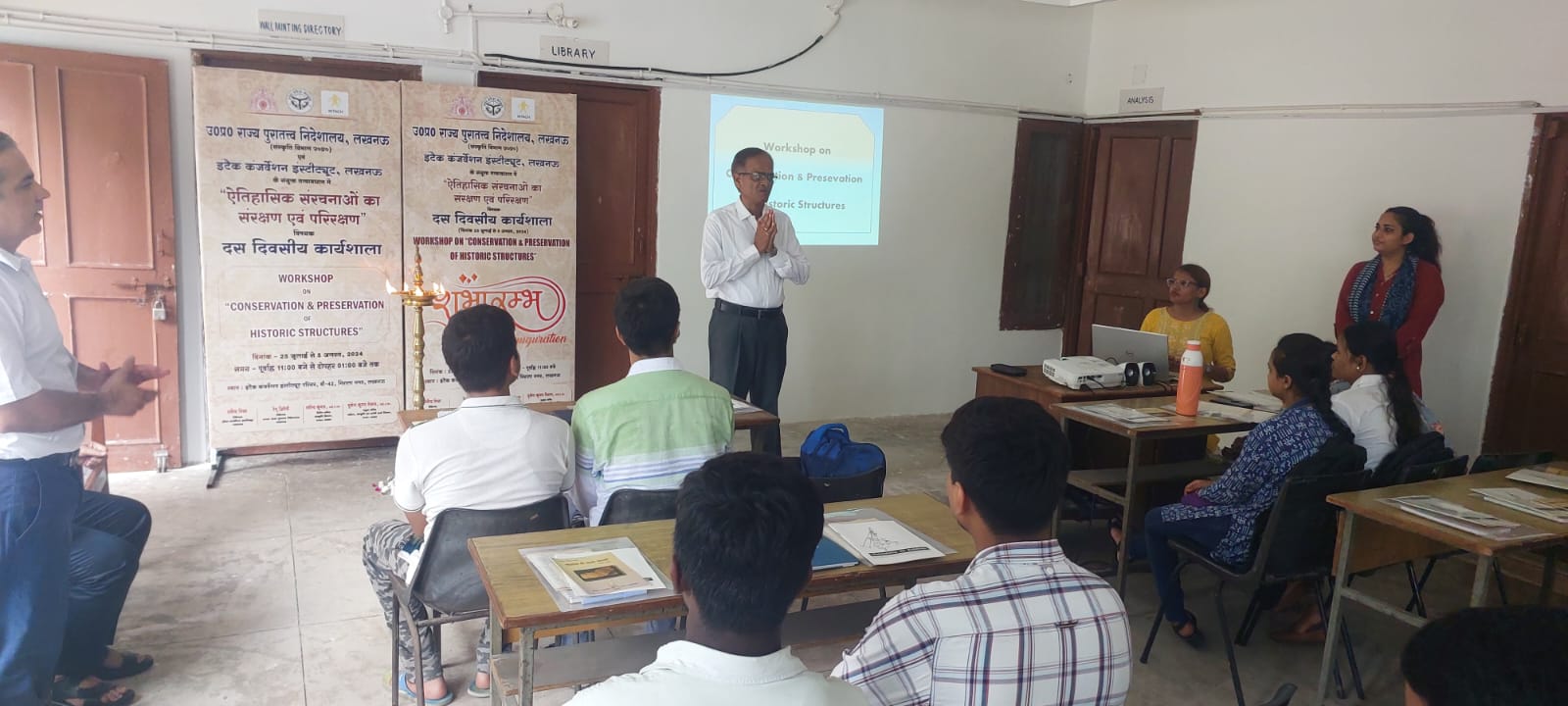 कार्यक्रम का शुभारंभ राकेश कुमार श्रीवास्तव पूर्व वरिष्ठ अधिकारी, पुरातत्व विभाग द्वारा दीप प्रज्वलन कर किया गया। कार्यक्रम का संक्षित परिचय विभाग के सहायक पुरातत्व अधिकारी डॉ0 राजीव कुमार त्रिवेदी ने प्रस्तुत किया। कार्यशाला सत्र के प्रारंभ में इंटैक कंजर्वेशन इंस्टीट्यूट के निदेशक धमेंद्र मिश्रा ने इंटैक इंस्टीट्यूट की स्थापना के उद्देश्य पर प्रकाश डालते हुए