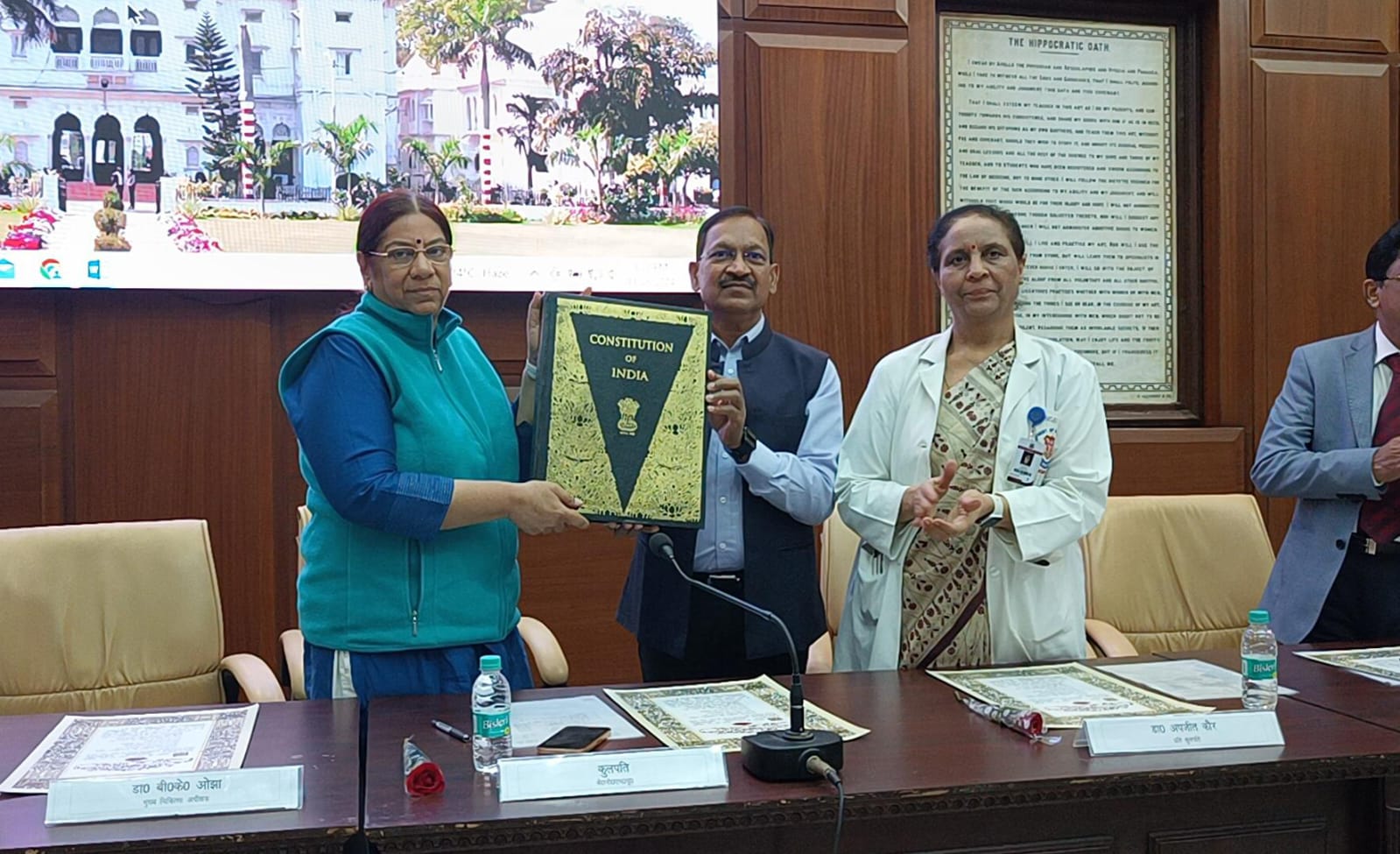 भारतीय संविधान के लीथोग्राफिक प्रिंट की प्रतिलिपि कुलपति कार्यालय में स्थापित की गयी