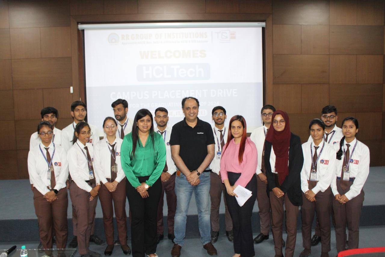 उत्तर प्रदेश डेस्क लखनऊ ( आर एल पाण्डेय )। आर आर ग्रुप ऑफ इन्स्टीट्यूशन्स, बख्शी का तालाब, लखनऊ में एच०सी०एल० टेक कम्पनी द्वारा कम्प्यूटर साइंस एंड इंजीनियरिंग, इन्फॉर्मेशन टेक्नोलॉजी, इलेक्ट्रिकल इंजीनियरिंग तथा इलेक्ट्रॉनिक्स इंजीनियरिंग ब्रांच के छात्रों के लिए कैम्पस प्लेसमेन्ट ड्राइव का आयोजन किया गया। एच०सी०एल० टेक कम्पनी की तरफ से आये हुए आशीष भल्ला (डायरेक्टर एचआर) और पूनम शर्मा (लीड कैंपस रिलेशन) ने छात्रों को संबोधित किया।