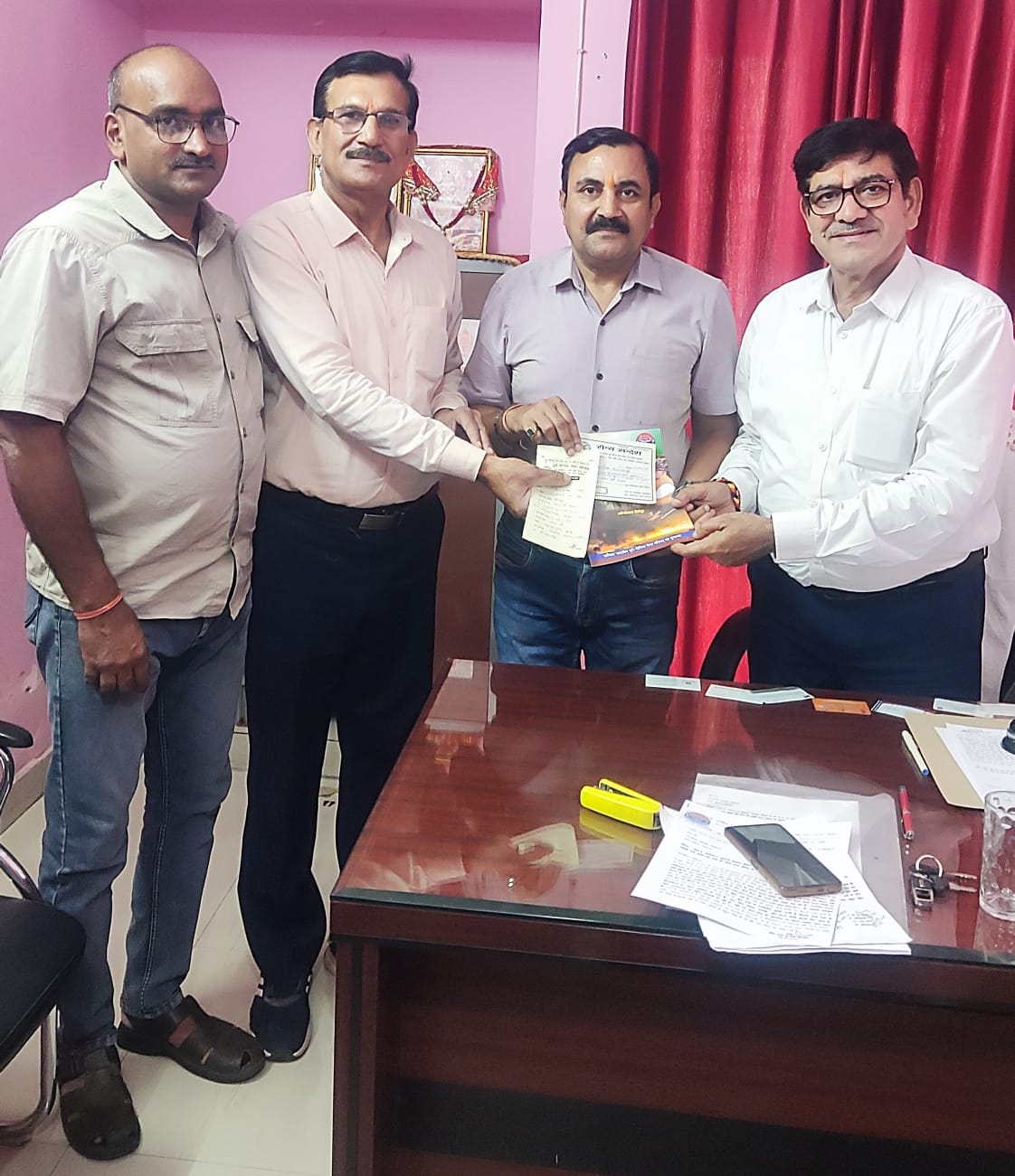 लखनऊ डेस्क आर एल पाण्डेय। अखिल भारतीय पूर्व सैनिक सेवा परिषद अवध प्रांत के अध्यक्ष कर्नल वीरेंद्र सिंह तोमर साहब के ऑफिस में सेक्टर 5c /140 में 14:30 बजे एक बैठक हुई, बैठक में सूबेदार मेजर बीएल वर्मा (उपाध्यक्ष) सूबेदार अशोक कुमार पाण्डेय ,(कोषाध्यक्ष) नायक कमलेश अग्निहोत्री, हवलदार (सेवारत सिग्नल कोर) विनीत अग्निहोत्री उपस्थित रहे,