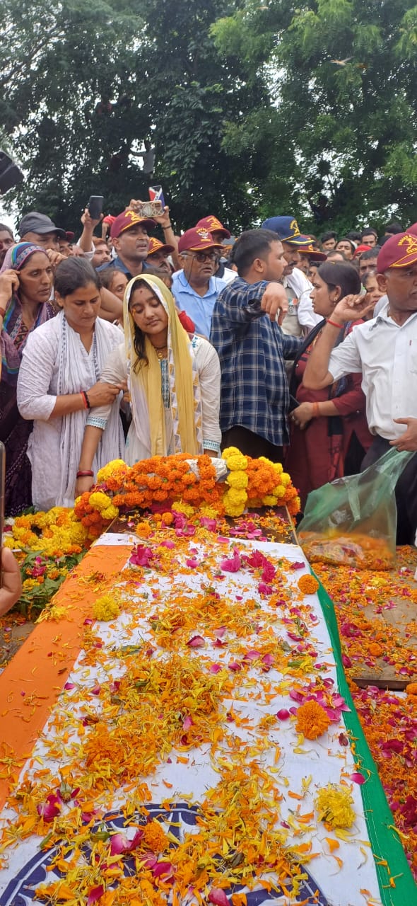 आज दिनांक 13 सितंबर 2024 को उनका पार्थिव शरीर आर्मी के द्वारा उनके पैतृक गांव लाया गया तो उस समय देश की सेवा करने वाले सैनिक के अंतिम दर्शन हेतु जन सैलाब उमर पाड़ा उनका अंतिम संस्कार उनके पैतृक गांव मसमरिया मैं 31 आर्म्ड डिविजन झांसी के तत्वावधान में सैनिक टुकड़ी द्वारा राष्ट्रीय ध्वज के साथ गॉड ऑफ ऑनर देकर अंतिम सलामी दी गई व विधि विधान से अंतिम संस्कार कराया गया इस मौके पर जनपद में सैनिकों के मुखिया जिला सैनिक कल्याण अधिकारी कमांडर नयन सिंह रावत ने जिले के सभी सैनिकों की ओर से पुष्प चक्र अर्पित कर अश्रु पूर्ण श्रद्धांजलि अर्पित की इसके साथ-साथ जनरल ऑफिसर कमांडिंग 31 आर्म्ड डिविजन की ओर से भी उनकी टीम ने पुष्प चक्र अर्पित कर अंतिम सलामी दी।