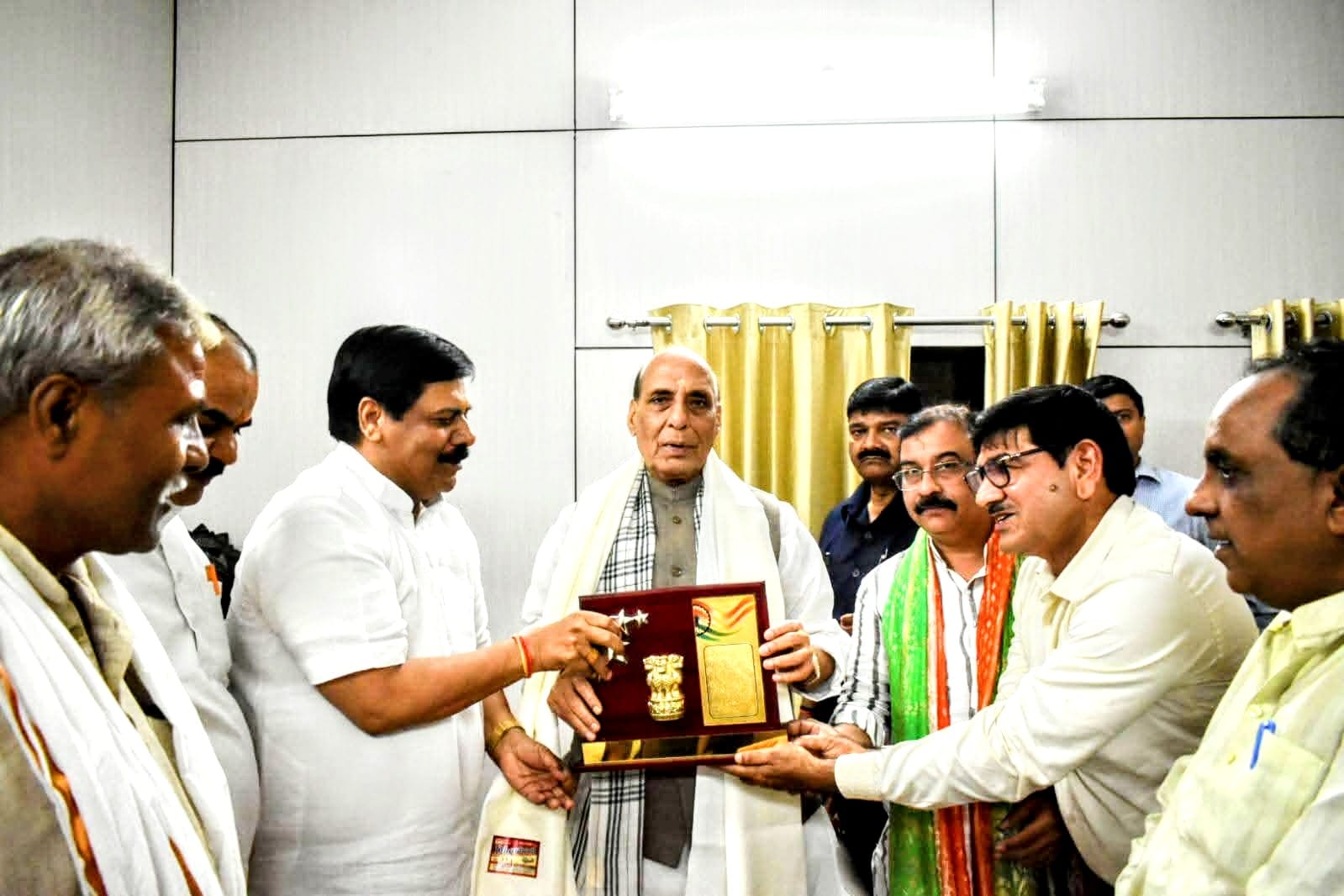 रक्षा मंत्री के लखनऊ आगमन पर लेफ्टिनेंट कर्नल बी एस तोमर (अध्यक्ष अवध प्रांत अखिल भारतीय पूर्व सैनिक सेवा परिषद) एवं कर्नल दयाशंकर दुबे पूर्व अध्यक्ष भाजपा पूर्व सैनिक प्रकोष्ठ उत्तर प्रदेश, संयोजक सैनिक कल्याण संस्थान उत्तर प्रदेश) पूर्व सैनिक बंधुओं की ओर से उनके आवास पर शिष्टाचार भेंट कर रक्षामंत्री राजनाथ सिंह को अंगवस्त्र स्मृति चिन्ह देकर सम्मानित कर आभार प्रकट किया।जय हिन्द, वन्दे मातरम्,,