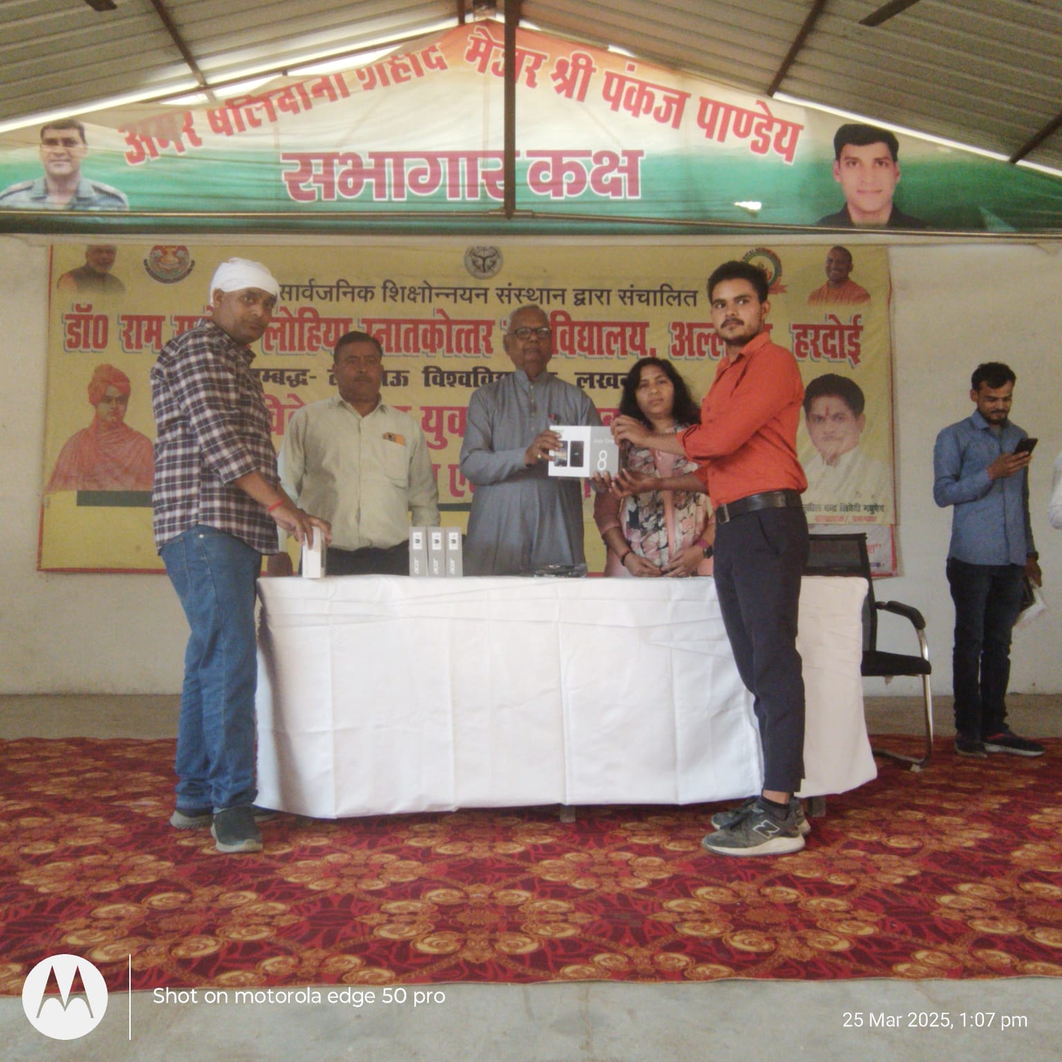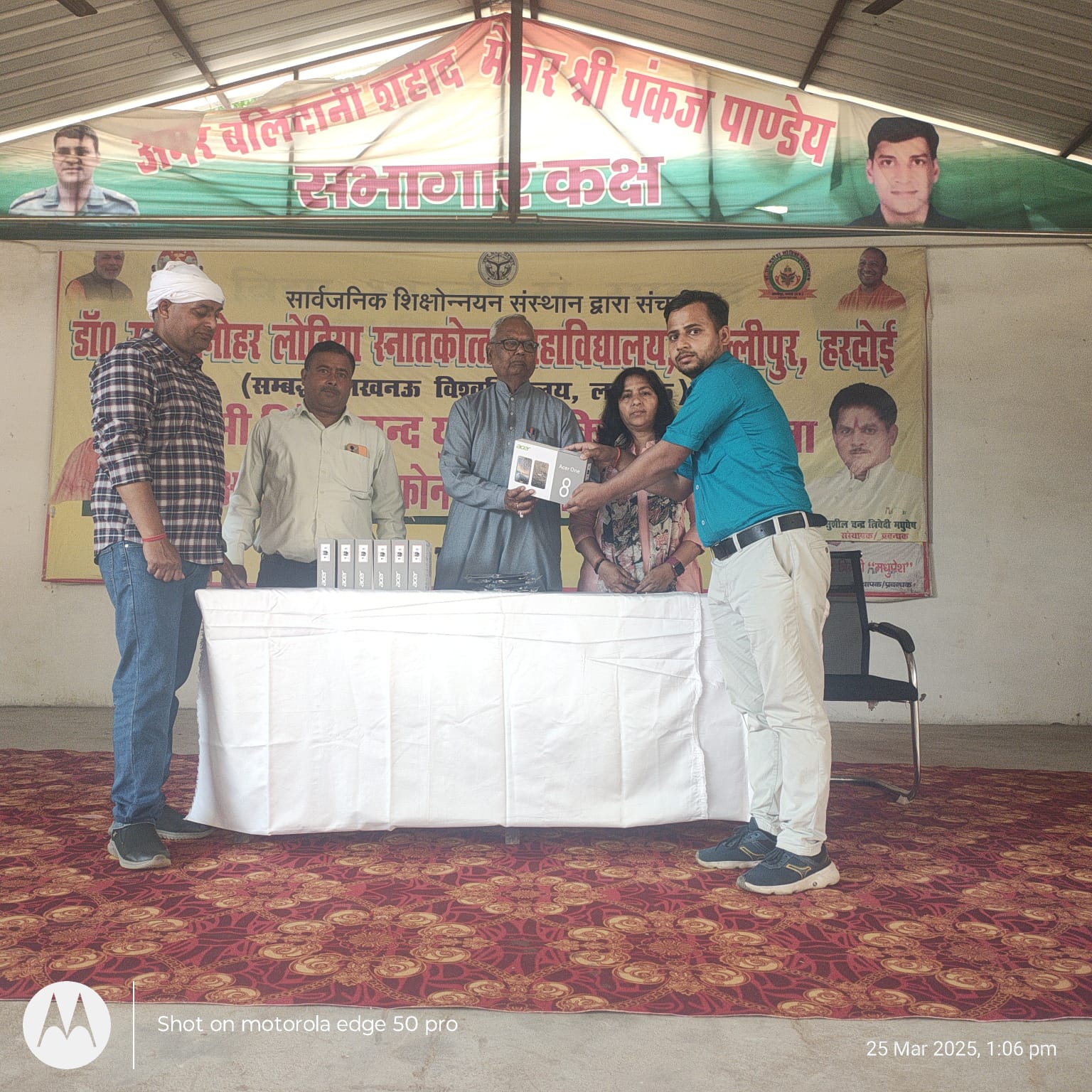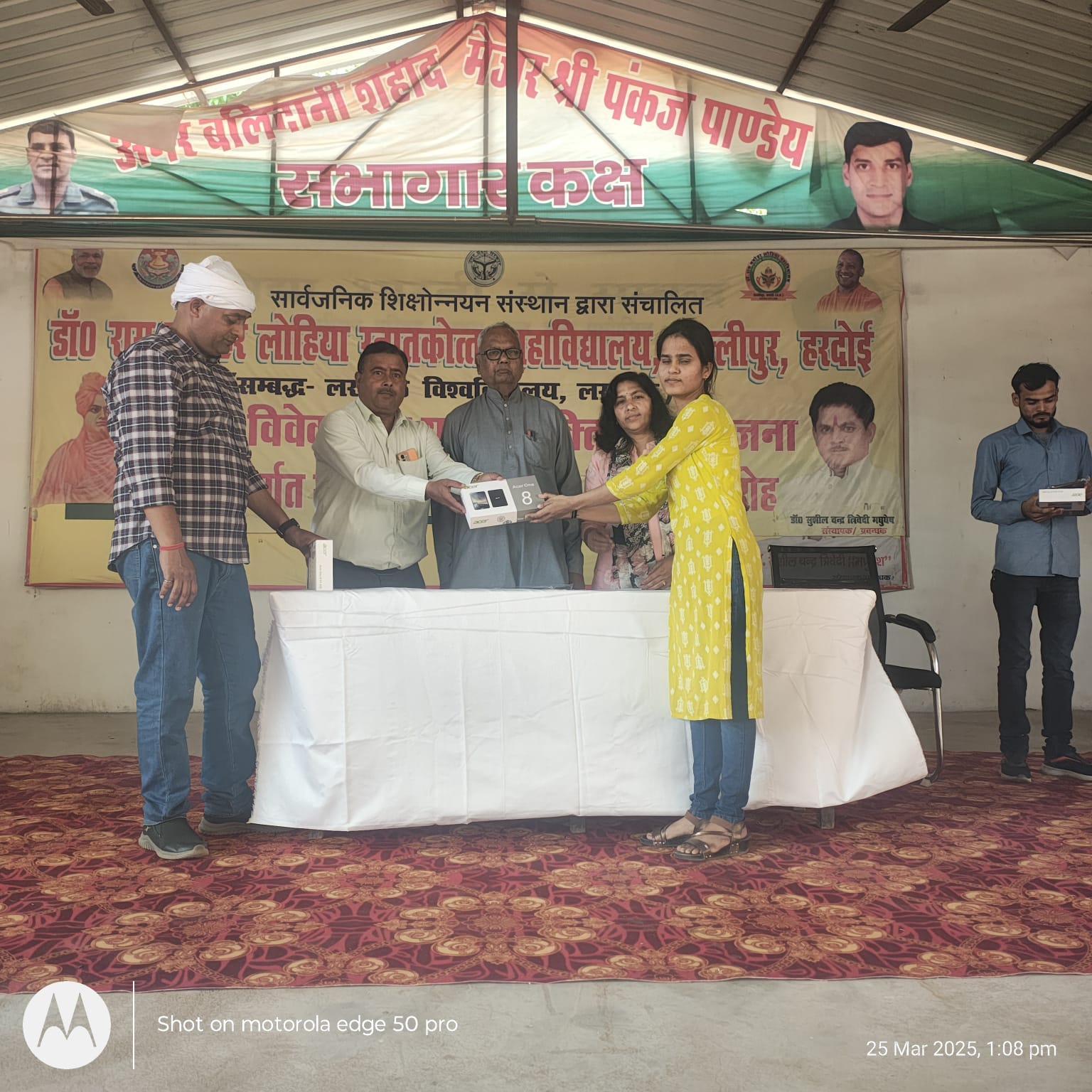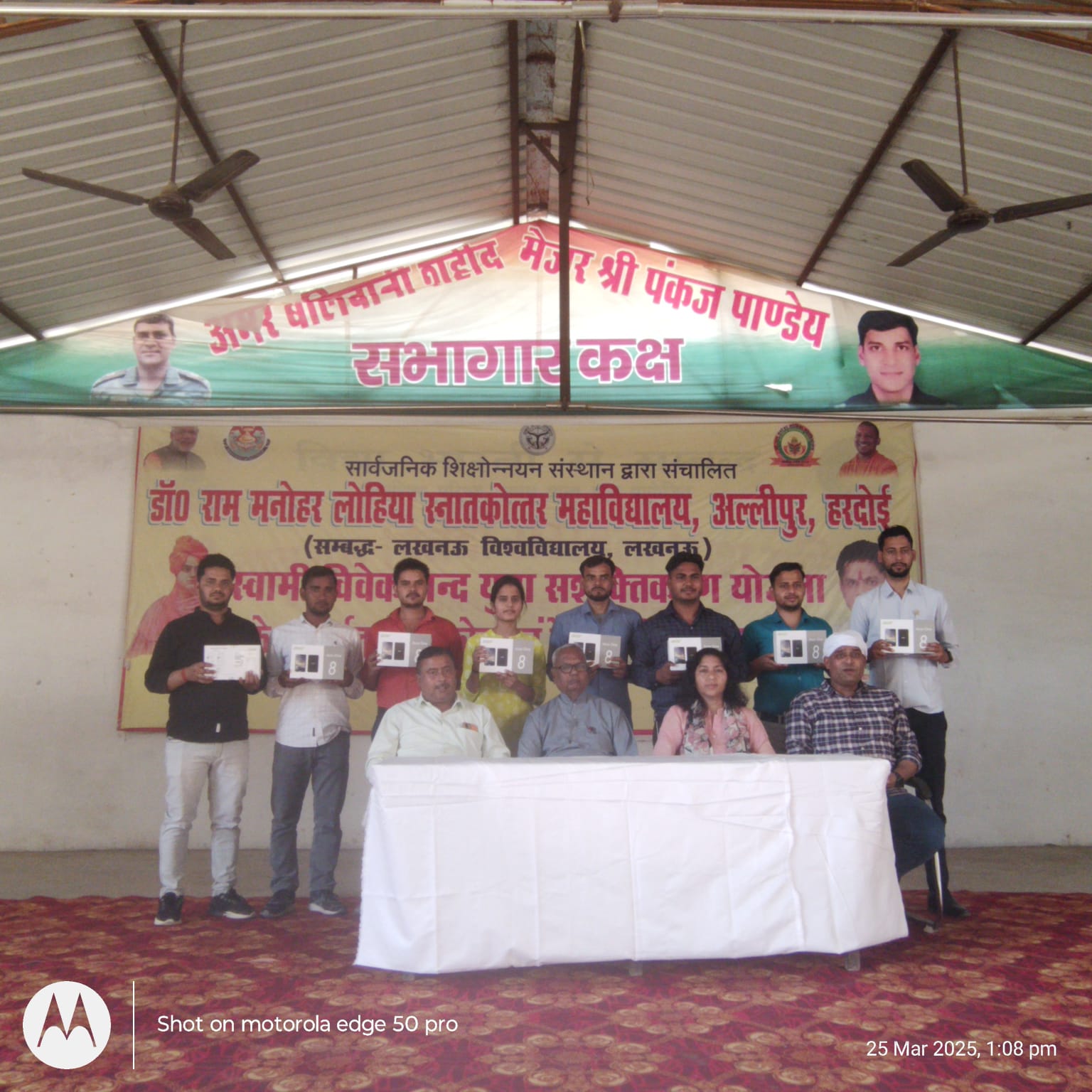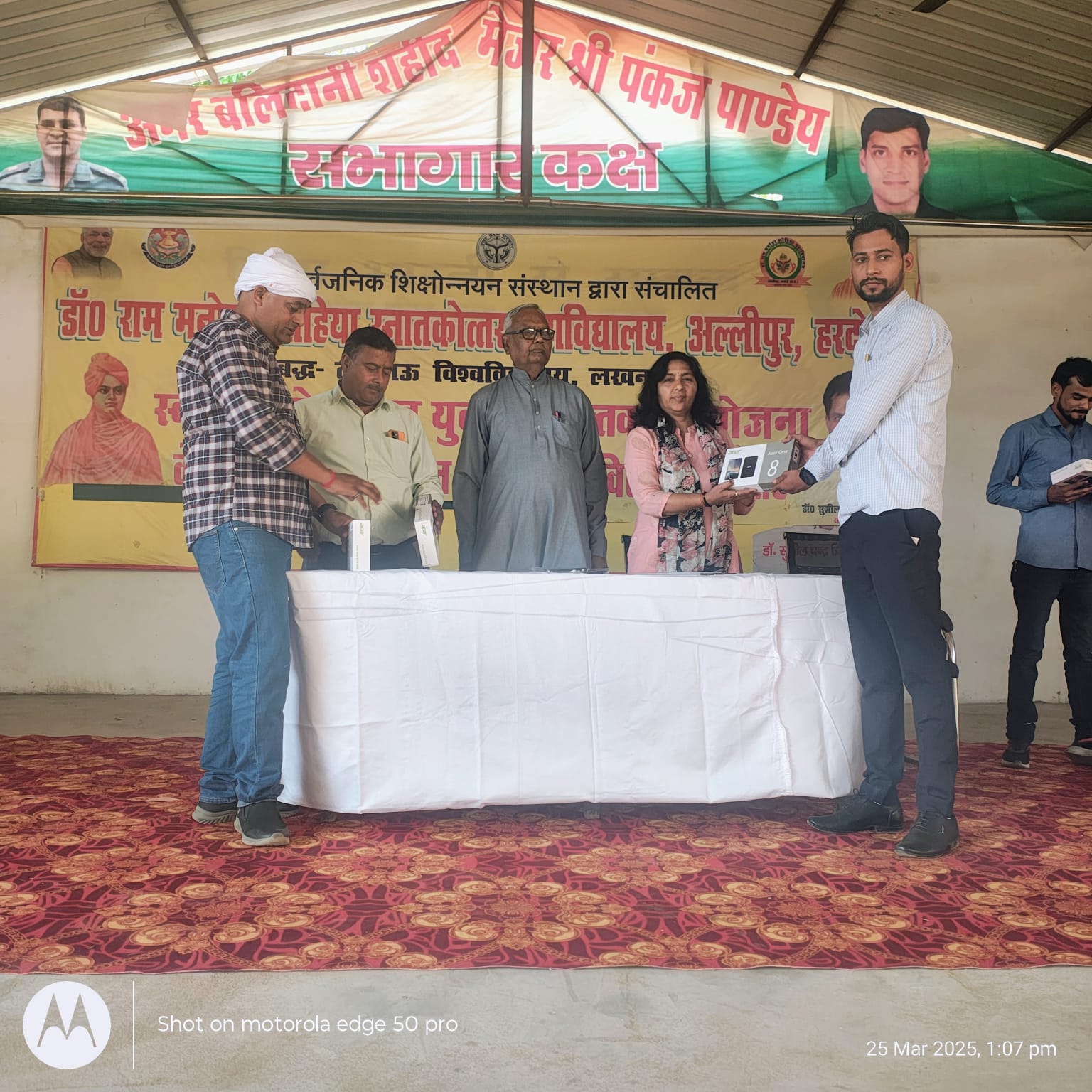 लखनऊ डेस्क (आर एल पाण्डेय)।डॉ राम मनोहर लोहिया स्नातकोत्तर महाविद्यालय, अल्लीपुर हरदोई में स्वामी विवेकानंद युवा सशक्तिकरण योजना के अंतर्गत स्मार्टफोन/ टैबलेट वितरण कार्यक्रम का आयोजन किया गया ।कार्यक्रम का शुभारंभ मां सरस्वती के समक्ष दीप प्रज्वलन मुख्य अतिथि श्री आर.पी.शर्मा व अध्यक्ष श्री संजय श्रीवास्तव जी ने किया। टेबलेट वितरण का कार्यक्रम में परास्नातक (एम.ए.,एम.एस-सी.) कक्षाओं के छात्र-छात्राओं को टेबलेट वितरण किया गया ।