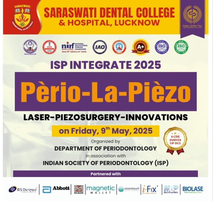 “पेरियो-ला-पीजो” के माध्यम से सरस्वती डेंटल कॉलेज एवं हॉस्पिटल एक बार फिर यह सिद्ध करने जा रहा है कि वह दंत चिकित्सा शिक्षा, नवाचार और उत्कृष्ट रोगी देखभाल के क्षेत्र में अग्रणी भूमिका निभा रहा है।