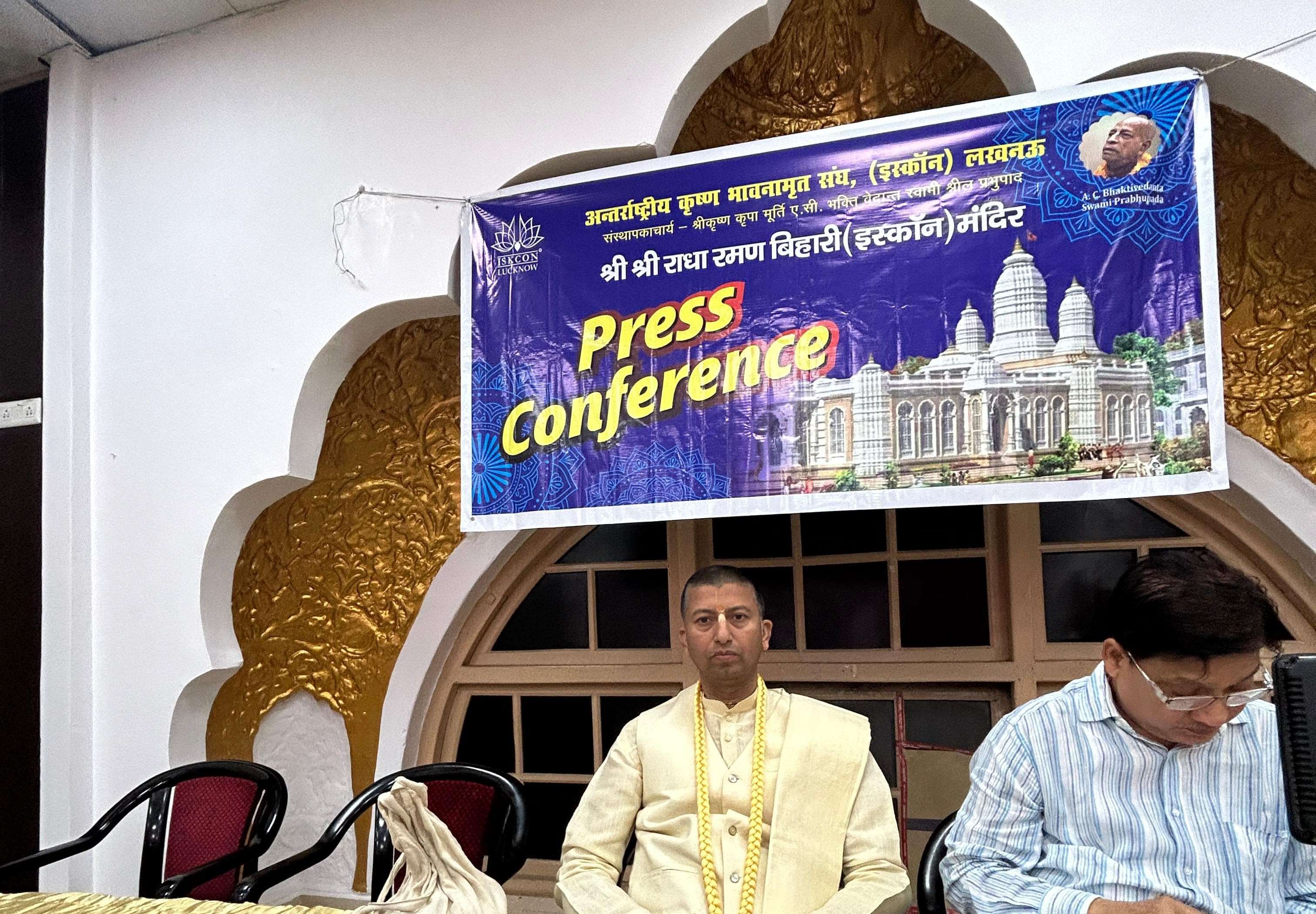 इस्कॉन मंदिर, लखनऊ द्वारा आयोजित "आनंदम" "मंगल महा मिलन" "फूलों की होली" कार्यक्रम के सन्दर्भ में की गई प्रेस वार्ता