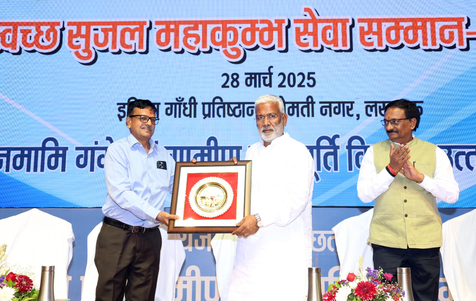 स्वच्छ सुजल गांव में बेहतरीन काम के लिए जिन 112 अधिकारियों-कर्मचारियों को सम्मानित किया गया। उन्हें अंगवस्त्र प्रदानकर सर्वश्रेष्ठ कार्य के लिए सर्टिफिकेट भी दिया गया। स्वच्छ सुजल गांव की पूरी टीम को लीड करने वाले राज्य पेयजल एवं स्वच्छता मिशन के वरिष्ठ सलाहकार राधा कृष्ण त्रिपाठी को विशेष रूप से सम्मानित किया गया।