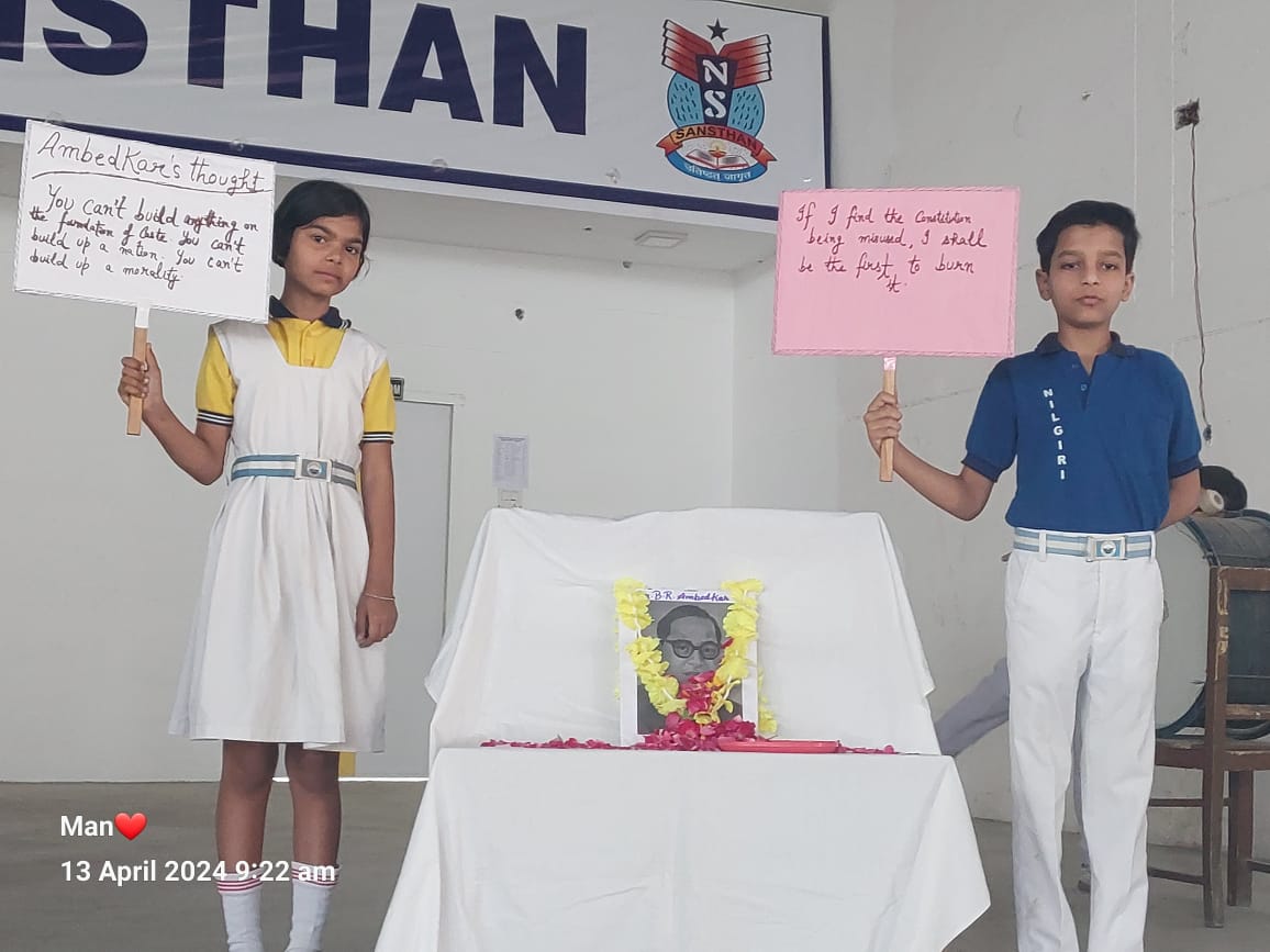 तत्पश्चात विद्यालय में बाबा भीमराव अंबेडकर जी की तस्वीर पर प्रधानाचार्य मनु कुमार शुक्ला द्वारा माल्यार्पण एवं शिक्षकों और बच्चों द्वारा पुष्पांजलि अर्पित करके उन्हें भावभीनी श्रद्धांजलि दी गई।इसके साथ ही कक्षा 6 के विद्यार्थियों मो. आकिब और श्रेया सिंह ने बाबा साहब के विचारों को सभी के मध्य रखा।