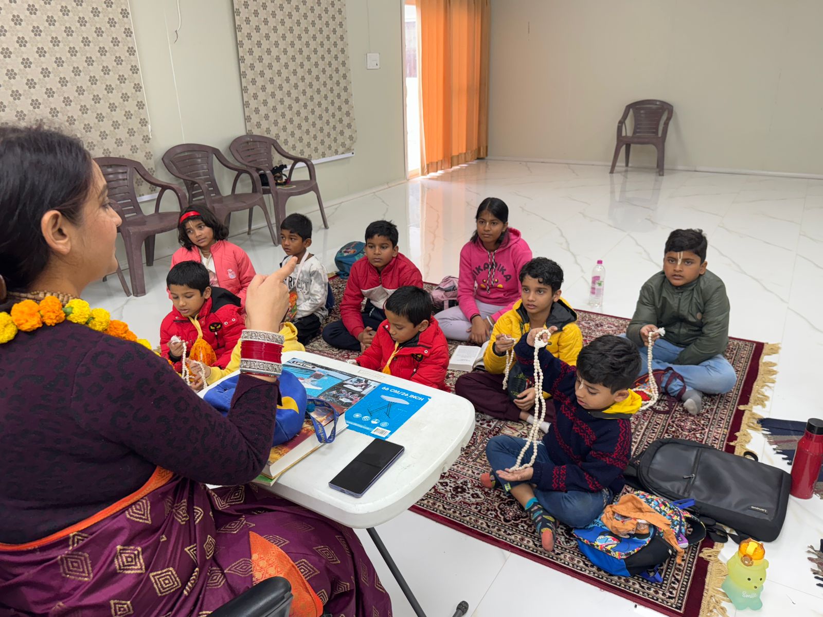 इस्कॉन मंदिर की संस्कारशाला में बच्चों ने सीखा हरे कृष्ण महामंत्र का जप करना