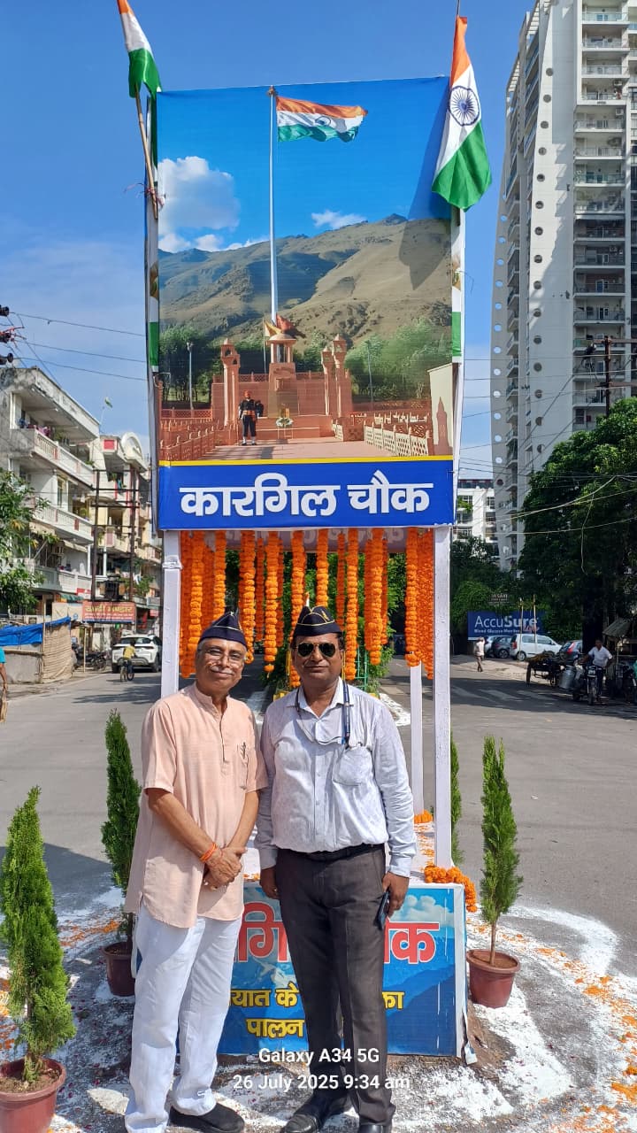 राष्ट्रीय सैनिक संस्था के राष्ट्रीय अध्यक्ष वीर चक्र प्राप्त करनल तेजिंदर पाल त्यागी जी ने आज वैशाली में कारगिल चौक का उद्घाटन किया जिसमें क्षेत्रीय पार्षद ,पूर्व मेयर साहिब और तेलंगाना सरकार के सलाहकार आदरणीय राजन छिब्बर जी और भूतपूर्व फौजियों ने हिस्सा लिया राजीव जोली खोसला ने c.s.o.i के जनरल मैनेजर रिटायर्ड कर्नल विजय यादव जी को 12 गरम दल क्रांतिकारी वीरों की तस्वीर वाली घड़ी दी जिन्होंने बताया कि वह स्वयं 19 वर्ष कारगिल में फौजी के दौरान सेवा दी है एक-एक चप्पा चप्पा मालूम है किस प्रकार - 45 डिग्री टेंपरेचर में वहां ड्यूटी दी जाती है सलूट है फौजियों को हम सब भारतीयों का कर्तव्य है की फौजियों और उनके परिवार को सम्मान दें भारतीय सेना के जवान हर प्रकार से सक्षम है भारत को बुलंदियों तक पहुंचने में जय हिंद जय भारत