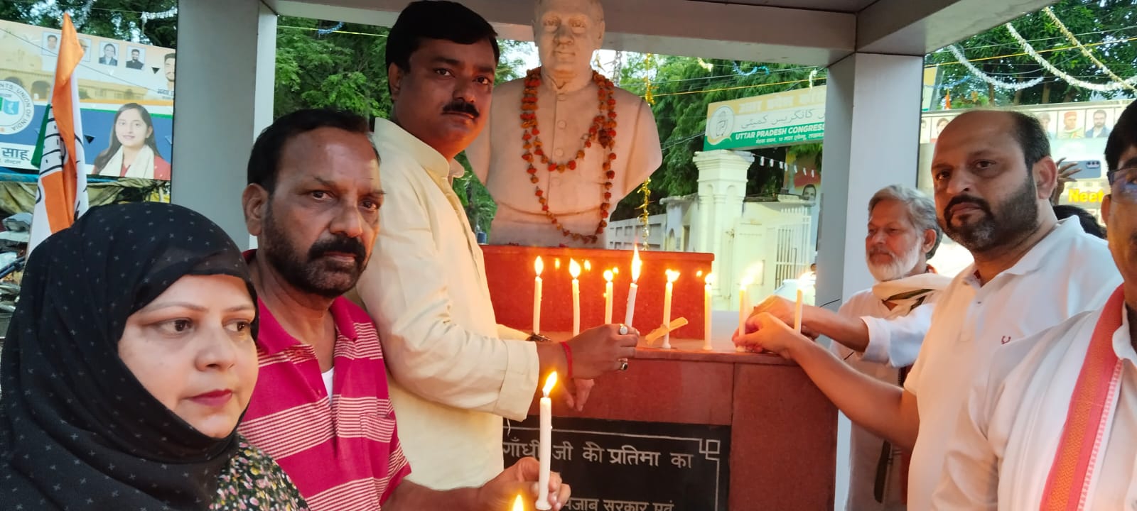 उत्तर प्रदेश डेस्क लखनऊ(आर एल पाण्डेय)।जनपद हाथरस में भगदड़ के दौरान हुई ह्रदय विदारक घटना में मृतकों की आत्मा की शांति के लिए तथा घायलों के शीघ्र स्वास्थ्य होने की कामना हेतु आज कांग्रेसजनों द्वारा प्रदेश कांग्रेस मुख्यालय के बाहर ‘‘राजीव चौक’’ पर कैडल जलाकर ईश्वर से प्रार्थना की गई।