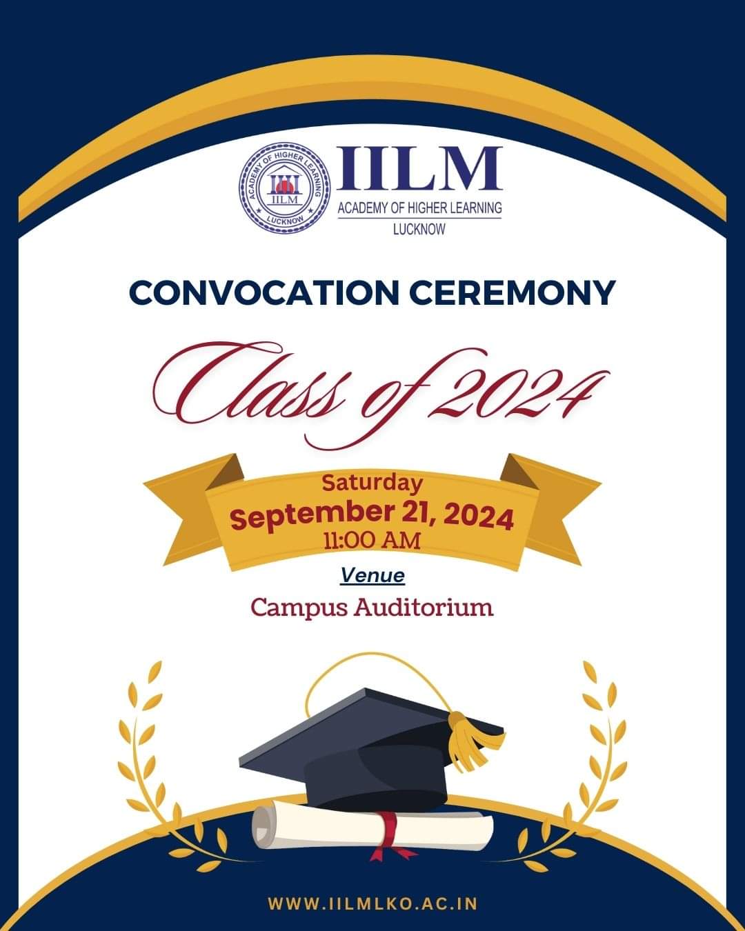 The proposed time and date for the Convocation Ceremony is from 11:30 A.M. onwards on Saturday, September 21, 2024. The venue will be IILM Campus at 1- Viraj Khand, Gomtinagar, Near Hanneman Chauraha, Lucknow.