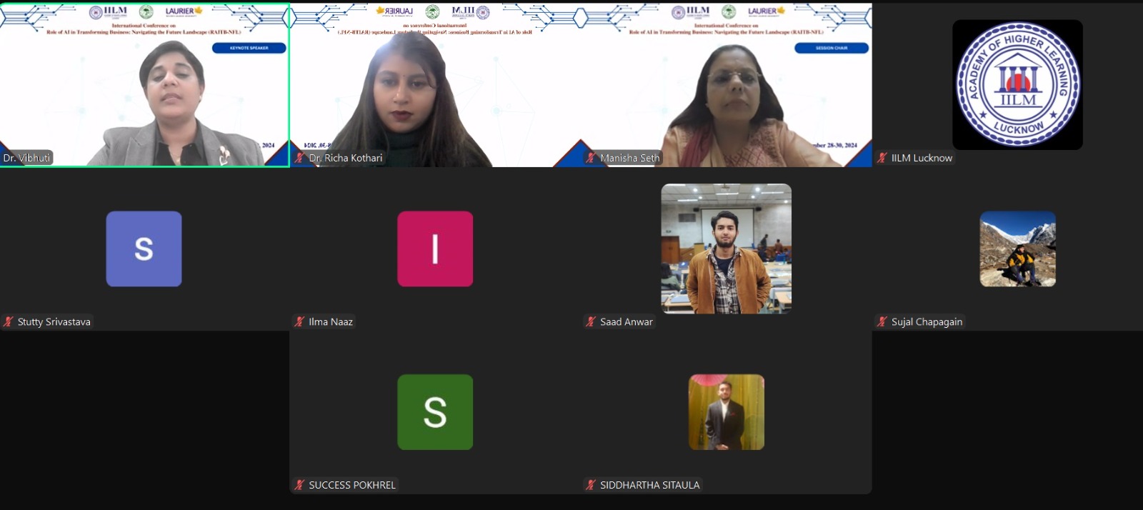 The first technical session, chaired by Prof. Manisha Seth (Jaipuria Institute of Management, Lucknow) and moderated by Dr. Vibhuti Gupta (IILM Lucknow), explored the theme of "Application of AI in Management Functions" through six impactful research papers. The presenters represented esteemed institutions like IFTM University, University of Lucknow, St. Xavier’s College (Kathmandu), Jamia Hamdard (New Delhi), MCNUJC Bhopal, and IILM Lucknow. The studies delved into AI’s transformative potential in banking, recruitment, marketing, HR, financial literacy, and branding. Topics included AI’s role in post-merger banking efficiency, AI-driven recruitment’s ability to reduce bias, the personalization of marketing through AI to build consumer trust, and its use in HR for workforce optimization.
