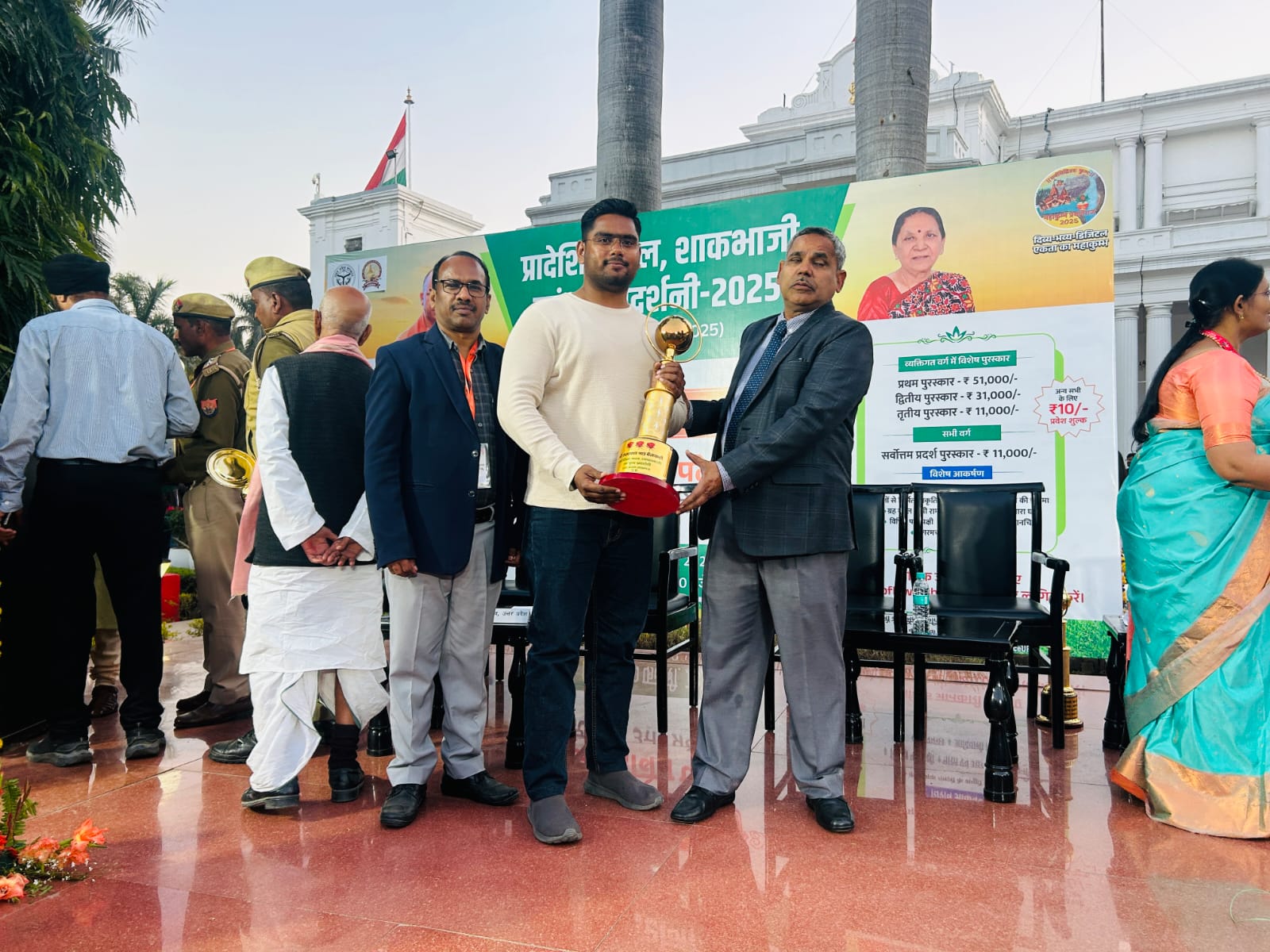 उत्तर प्रदेश : उत्तर प्रदेश राजभवन में आयोजित कृषि प्रदर्शनी में मोहम्मद समीर को राज्य स्तर पर प्रथम पुरस्कार से सम्मानित किया गया। यह सम्मान उन्हें आधुनिक खेती, नवाचार और किसानों के हित में किए गए बेहतरीन कार्यों के लिए दिया गया है।