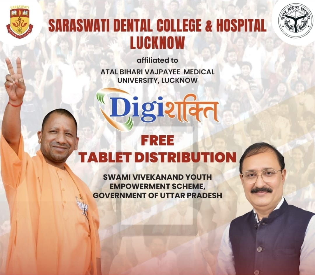 लखनऊ। उत्तर प्रदेश सरकार की महत्वाकांक्षी “डिजिशक्ति” योजना के अंतर्गत सरस्वती डेंटल कॉलेज एवं अस्पताल (SDC&H) में एक भव्य टैबलेट वितरण कार्यक्रम का आयोजन किया गया। यह प्रतिष्ठित संस्थान अटल बिहारी वाजपेयी चिकित्सा विश्वविद्यालय, लखनऊ से संबद्ध है और NAAC एवं NIRF द्वारा मान्यता प्राप्त है।