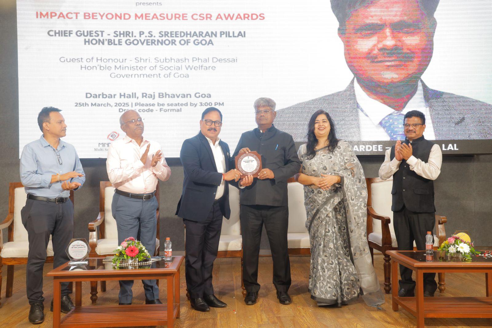 राज्यपाल ने “इम्पैक्ट बियांड मेजर सीएसआर अवार्ड” से नवाजा