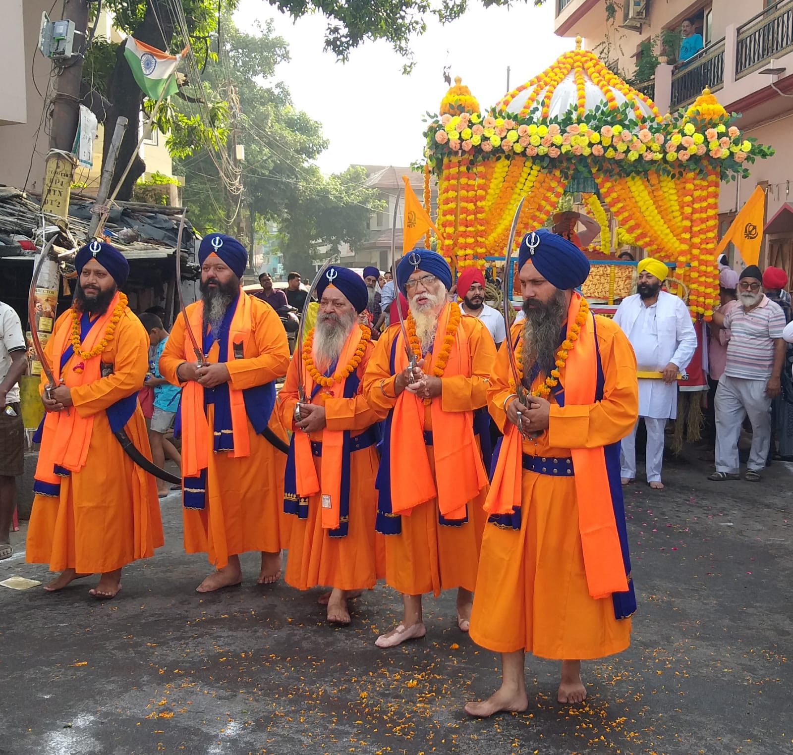 जिनके पीछे विशेष रूप से सजाई गई फूलों से सुसज्जित भव्य पालकी साहिब में सुशोभित श्री गुरू ग्रन्थ साहिब जी को ज्ञानी गुरजिंदर सिंह चांवर कर रहे थे। उक्त पालकी साहिब के आगे मार्ग की सफाई करके श्री गुरू ग्रन्थ साहिब जी की सवारी के लिये मार्ग पर पुष्प बिछा रहे थे। दशमेश सेवा सोसाइटी के संचालक मंडल के ताजिंदर सिंह और इंद्रजीत सिंह ने बताया कि शहीद बाबा दीप सिंह जी गतका ग्रुप अमरोहा द्वारा गतके के जौहर दिखाते हुए प्रभात फेरी मोदीनगर चौराहा, गौड़िया मठ रोड, डी0ए0वी0 कालेज ऐशबाग रोड, नाका चौराहा, होता हुआ नगर कीर्तन वापस गुरूद्वारा साहिब पहुंचा। इस नगर कीर्तन में खालसा इण्टर कालेज के एन.सी.सी.छात्रों एवं बैंड तथा श्री गुरूनानक गर्ल्स इंटर कॉलेज बांसमंडी की बच्चियों ने बैण्ड बाजों के साथ भाग लिया।