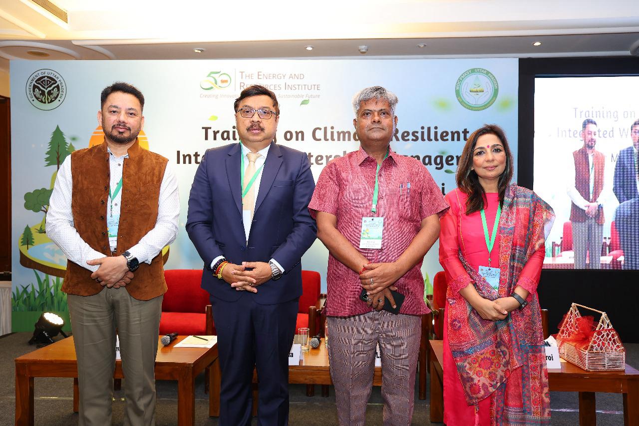 उत्तर प्रदेश सरकार के WDC-PMKSY 2.0, पार्टि भूमि विकास विभाग के सीईओ डॉ. हीरा लाल ने मुख्य भाषण दिया। उन्होंने कहा, "जलवायु परिवर्तन एक तात्कालिक और समय-संवेदनशील मुद्दा है। जब हम ज्ञान पूंजी को वित्तीय और सामाजिक पूंजी के साथ जोड़ते हैं, तो हम अद्भुत परिवर्तन ला सकते हैं।" उन्होंने आगे कहा, "हमारी दो माताएँ हैं: एक जिसने हमें जीवन दिया, और दूसरी 'जल, जंगल और ज़मीन'। जलवायु परिवर्तन को रोकने के लिए हमें अपनी दूसरी माता की उसी प्रकार देखभाल करनी होगी, जैसे हम अपनी जैविक माता की करते हैं।"