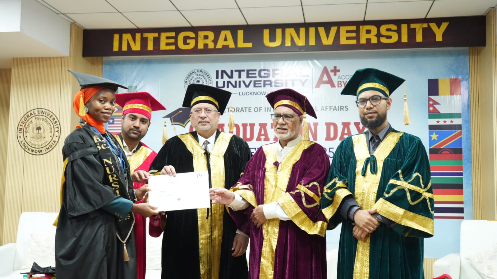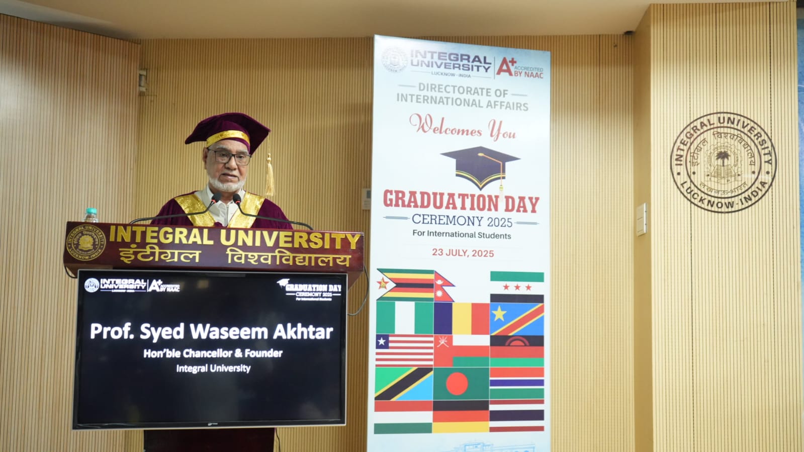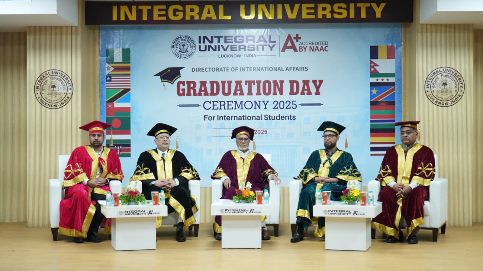 इंटीग्रल यूनिवर्सिटी, लखनऊ ने 23 जुलाई 2025 को अंतरराष्ट्रीय स्नातक दिवस समारोह का आयोजन कर विभिन्न देशों से आए विद्यार्थियों की शैक्षणिक उपलब्धियों का उत्सवपूर्वक सम्मान किया। इस भव्य समारोह में ओमान, तंज़ानिया, नाइजीरिया, सूडान, नेपाल, गाम्बिया सहित कई देशों से आए लगभग 62 छात्रों को स्नातक और परास्नातक उपाधियाँ प्रदान की गईं।