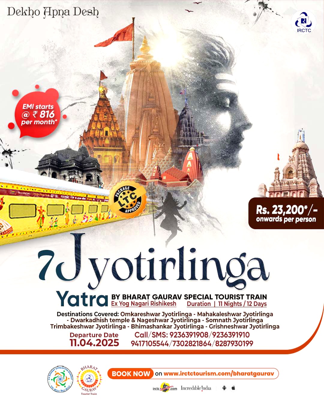 आईआरसीटीसी द्वारा भारत गौरव यात्रा पर्यटक ट्रेन- 7 ज्योतिर्लिंग यात्रा का संचालन