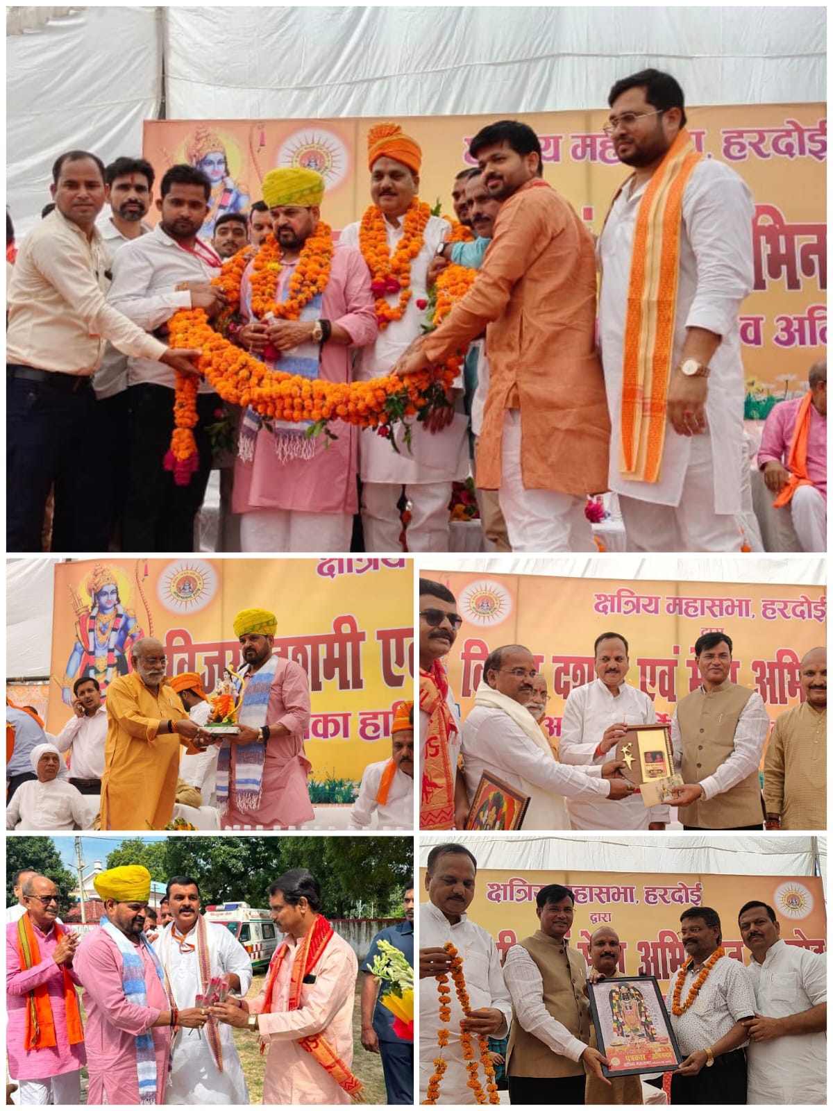 गांधी मैदान में आयोजित विजयदशमी पर्व वह बेध अभिनंदन कार्यक्रम में विशिष्ट अतिथि की हैसियत से पहुंचे एमएलसी पवन सिंह चौहान ने मंच से सभी क्षत्रिय बांधों को अस्वस्थ किया की उनके द्वारा संचालित कॉलेज तथा उनके विश्वविद्यालय में जनपद हरदोई के बच्चों को अपने अध्ययन के लिए विशेष सहयोग किया जाएगा इसके अलावा रोजगार दिलाने में भी उनका पूरा सहयोग रहेगा। उन्होंने कहा कि हरदोई के क्षत्रिय समाज के लोग किसी भी समय उनसे मिल सकता है हरदोई वालों के लिए हर समय उनका दरवाजा खुला रहेगा। इसके अलावा सवायजपुर विधायक माधवेंद्र प्रताप सिंह रानू ने अपनी संबोधन में कहा कि वह हमेशा क्षत्रिय समाज के सहयोग के लिए तत्पर रहते हैं।