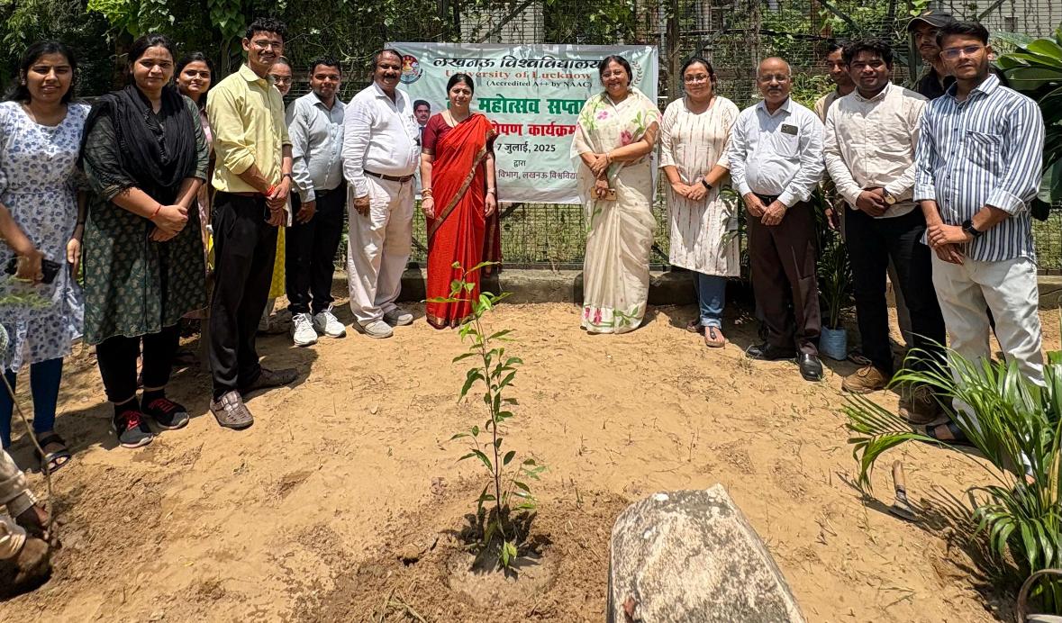 लखनऊ। वन महोत्सव सप्ताह (1–7 जुलाई 2025) के उपलक्ष्य में लखनऊ विश्वविद्यालय में व्यापक पौधरोपण अभियान का आयोजन किया गया। यह कार्यक्रम कुलपति प्रो. आलोक कुमार राय के मार्गदर्शन में संपन्न हुआ, जिसमें विश्वविद्यालय के दोनों परिसरों में शिक्षकों, छात्रों और कर्मचारियों ने बढ़-चढ़कर हिस्सा लिया।