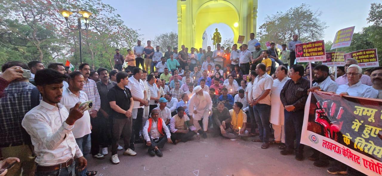 अमीनाबद विनोद अग्रवाल अशोक मोतियानी संजय कपूर के नेत्रत्व दवा मार्केट हरीश साह, लाटूस रोड व्यापार मण्डल के सतीश अग्रवाल, हीवेट रोड से अतुल त्रिपाठी, लालबाग से संजीव अग्रवाल, जनपथ रमेश मिश्रा, हजरतगंज से विनोद पंजावी, श्रीराम टावर से नीरज जौहर सदर बाजार से सतवीर सिंह राजू गोमतीनगर से राजेश सोनी चिनहट से शशी शुक्ला के नेत्रत्व में बाजारों से सैकड़ो संख्या में आए हुए व्यापारियों ने पहलगाम में हुए कायरतापूर्ण आतंकी हमले के विरोध में लखनऊ व्यापार मण्डल के चेयरमैन राजेन्द्र कुमार अग्रवाल अध्यक्ष अमरनाथ मिश्र के नेतृत्व में आज शाम 7 बजे गांधी प्रतिमा हजरतगंज जीपीओ पर मशाल जुलूस निकालकर हमले में मारे गये सैलानियों को श्रद्धांजलि देते हुए विरोध दर्ज कराया।